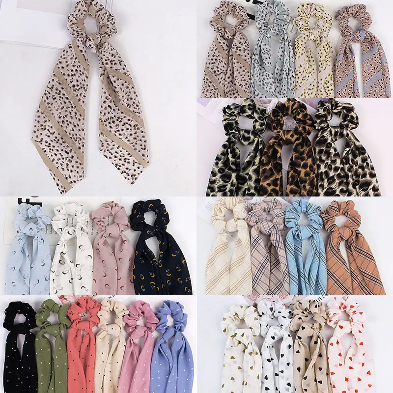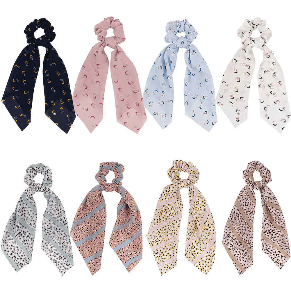 Леопардовая Луна маленькие точки печати резинки шифон упругий лук для волос шарф веревка для волос
