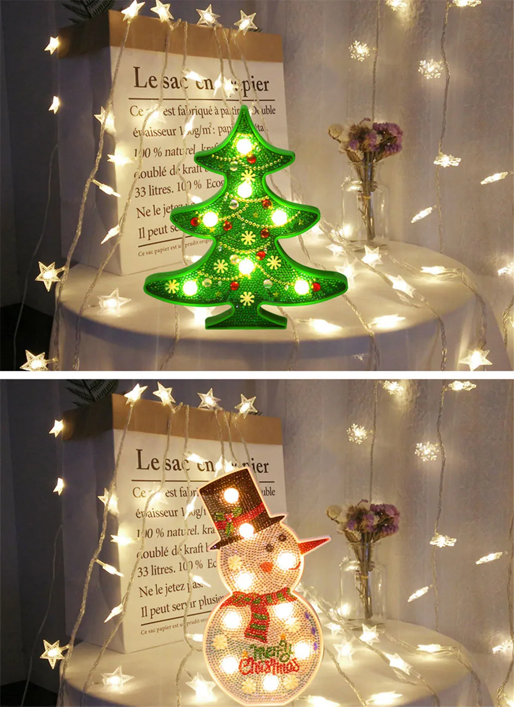 Название продукта: рождественское ночное освещение Цвет света: теплый белый Стиль: Рождественская елка, снеговик Режим: Тип батареи (батарея в комплект не входит) Особенности продукта: энергосбережение/Охрана окружающей среды/длительный срок службы