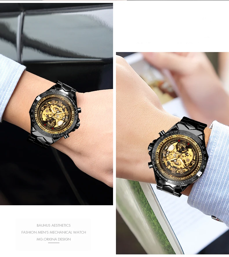 Особенности: 100% новый и высококачественный Уникальный дизайн из нержавеющей стали подходит для мальчиков и мужчин Механические часы 12 месяцев гарантии Диаметр циферблата часов: прибл. 4,5 см. Ширина ремешка: прибл. 2,0 см, Длина: Прибл. 19 см Толщина корпуса: прибл. 1,7 см Посылка включает в себя: -1 х Оригинальные часы mg. orkina Внимание: Механические часы разрешают время +-2 минуты в течение 24 часов. Это международные механические часы. Если кто-то заботится, пожалуйста, не покупайте. Спасибо Предложения по использованию механических часов Автоматическое движение часов, энергия от движения руки владельца. Поэтому вам не нужна ручная намотка часов под нормальным корпусом. Возможно, потребуется ручная намотка из-за физической активности пользователя, энергии не достаточно для работы часов. Пожалуйста, возьмите контроль, который повернет корону меньше, чем 20 кругов. Не нося более 40 часов автоматических часов, необходимо повернуть головку на 20 кругов, чтобы повторно начать движение системы привода перед тем, как носить снова. Чтобы предотвратить попадание влаги в корпус часов и сохранить водонепроницаемость, убедитесь, что корона всегда находится в закрытом состоянии.