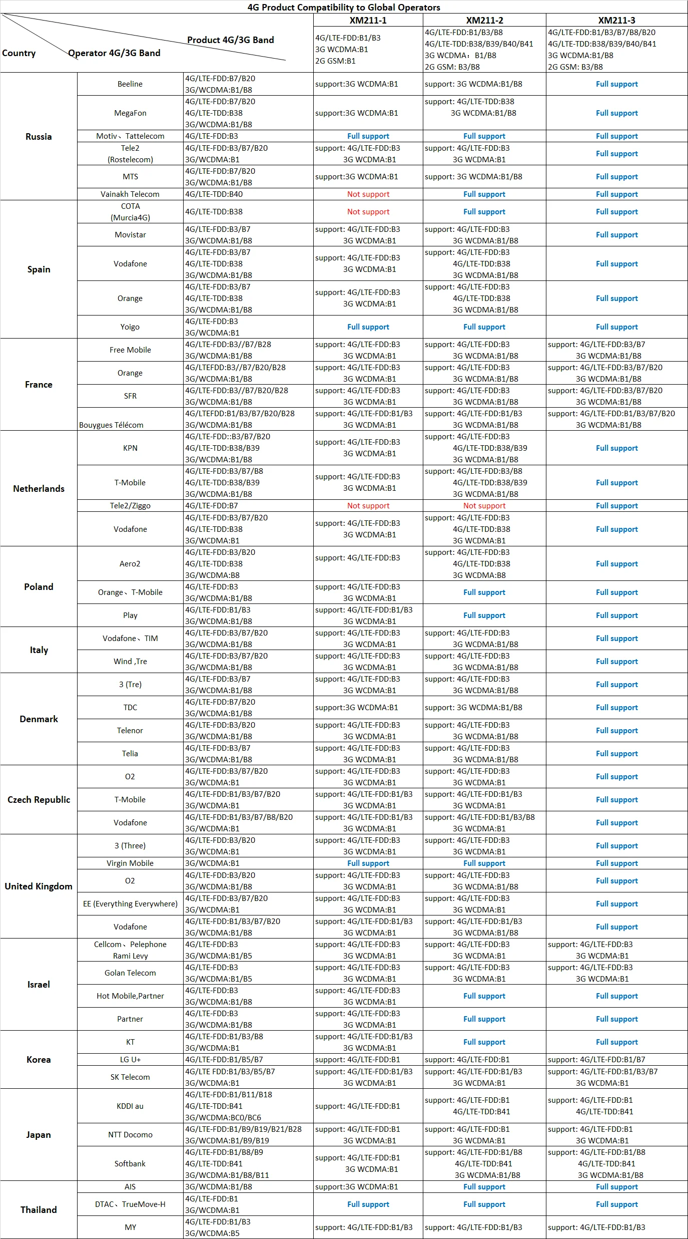 Советы: поддержка 4G частота сетевого диапазона: FDD LTE: B1(2100 МГц)/ B3(1800 МГц)/B7 (2600 МГц)/B8(900 МГц)/B20 (800 DD) B7 (2600 МГц) сетевой диапазон Для некоторых стран APN не может быть автоматически распознан, и информация APN должна быть добавлена вручную.