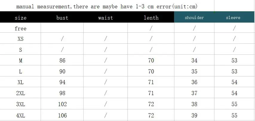 Таблица размеров