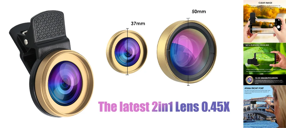 Широкоугольный объектив uper 0,45x + макрообъектив 12,5x с широкоугольным объективом 0,45x, расширяющим более широкое видение, идеально подходит для съемки больших диапазонов, особенно идеально подходит для групповых снимков, которая может держать большую группу людей на одной фотографии идеально, без темных углов.