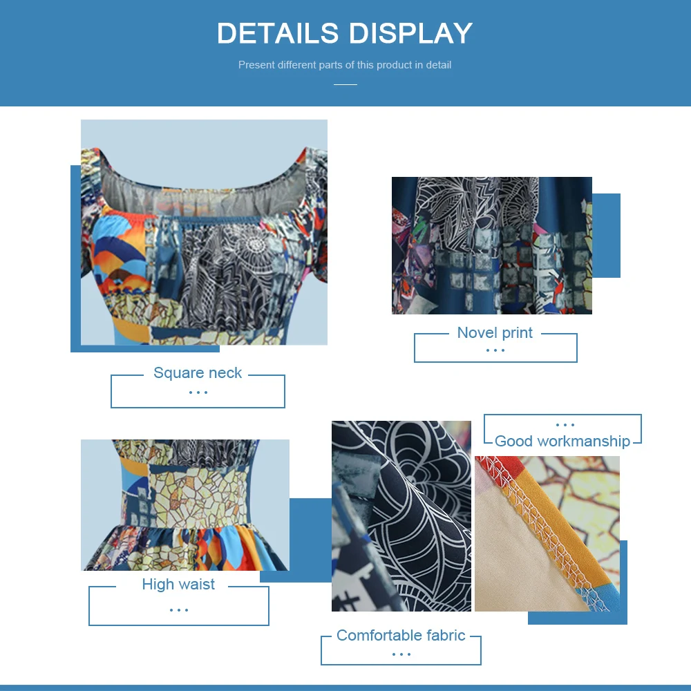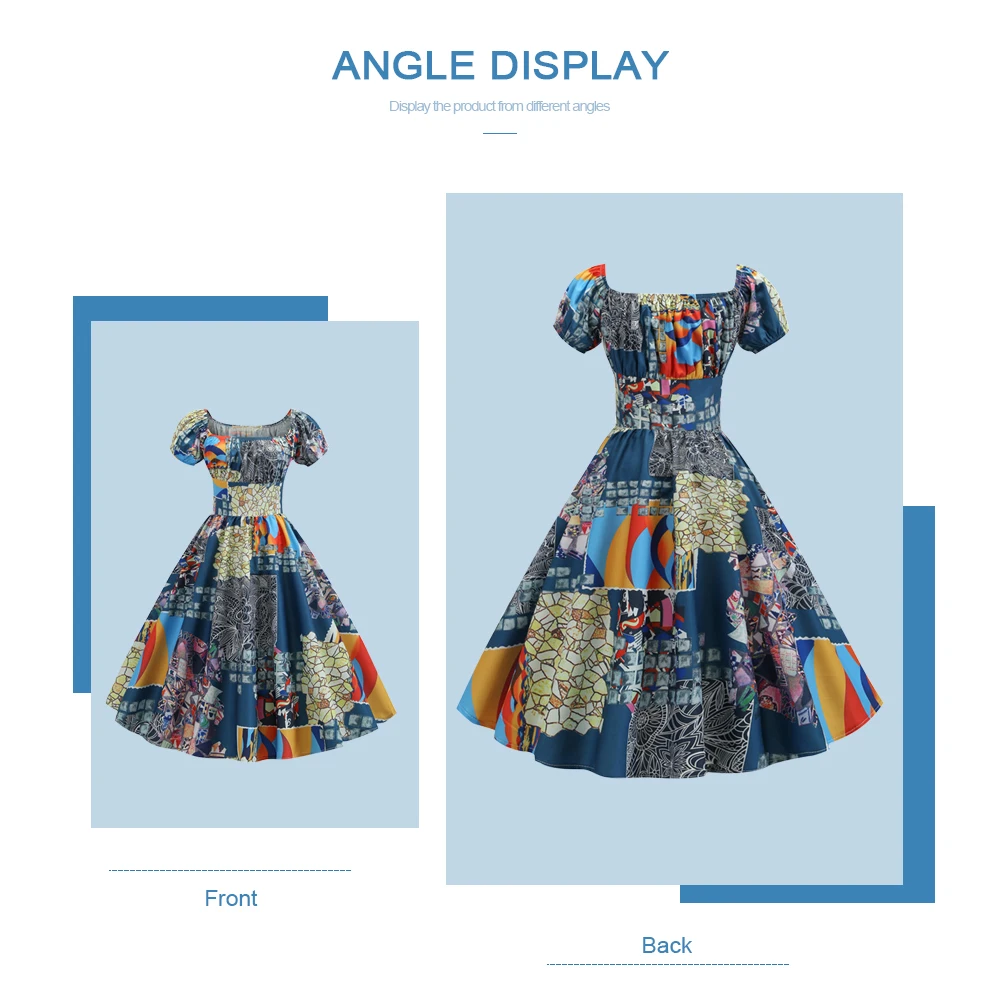 Женское Макси-Платье с принтом в стиле ретро, элегантное ТРАПЕЦИЕВИДНОЕ ПЛАТЬЕ с пышными рукавами и квадратным вырезом, с высокой талией, с короткими рукавами, женские сексуальные платья с круглым вырезом
