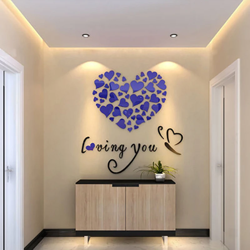 3D стерео акриловая кристальная Наклейка на стену, наклейка для дома, художественное украшение на стену, любящее сердце