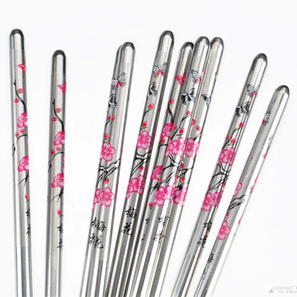 Палочки для еды из нержавеющей стали с цветочным узором 5 пар палочки для еды с миньонами металлические палочки для еды кухонные аксессуары