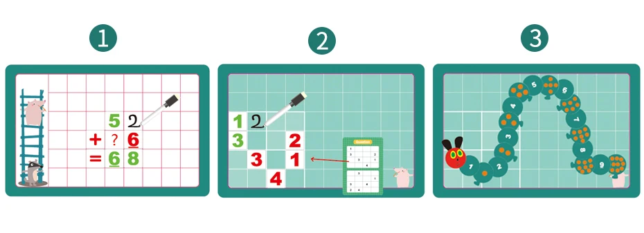 1. Напишите произвольные цифры на нижней плате и попробуйте другие арифметические операции. 2. Игры Sudoku 3. Игра-головоломка гусеницы
