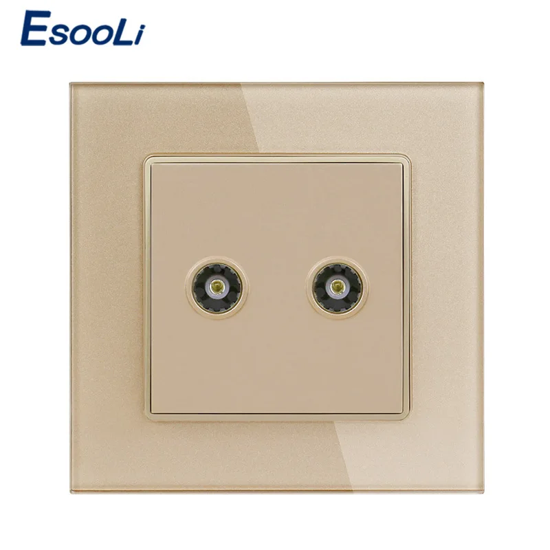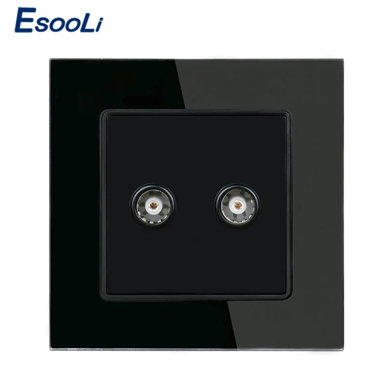 Esooli белая роскошная хрустальная стеклянная панель, двойная 1 банда RJ11, 2 ядра, телефонная розетка, настенная розетка, популярная у ES RU