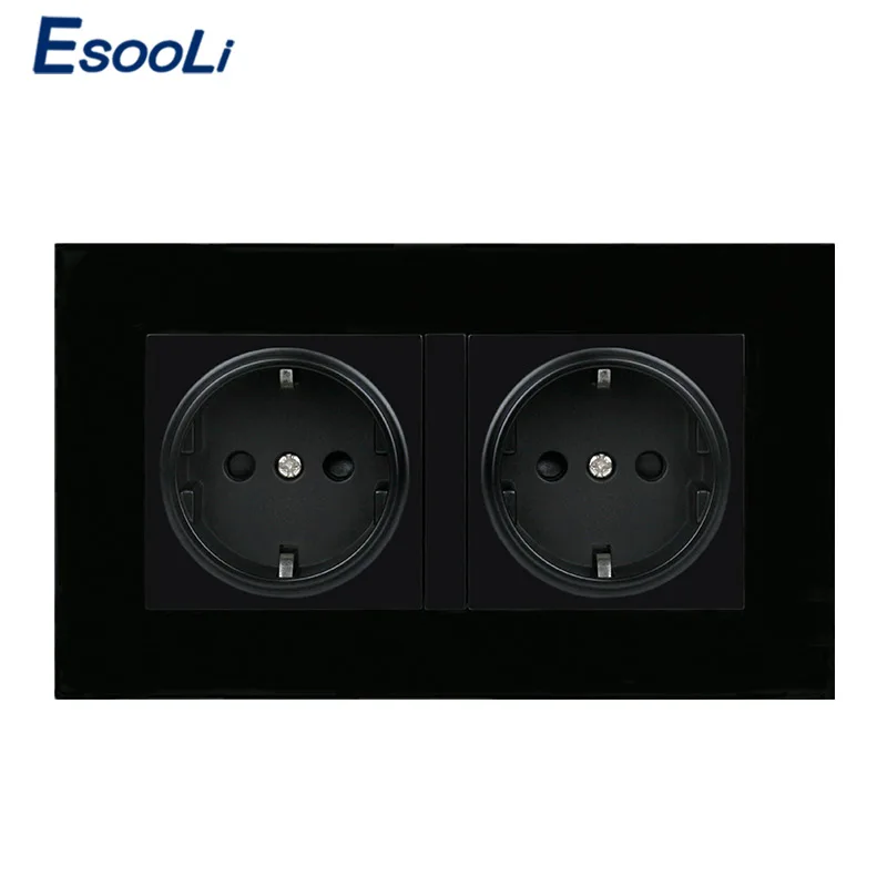 Esooli, высокое качество, золото, пластик, настенная мощность, двойная розетка, заземленная, 16А, стандарт ЕС, электрическая двойная розетка 146 мм * 86 мм