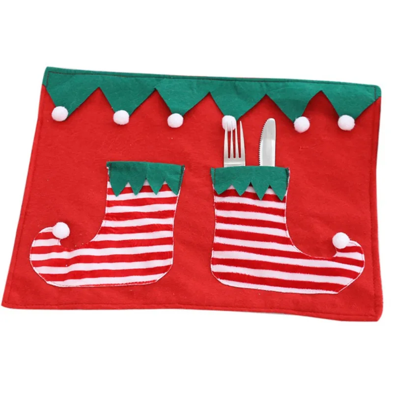 Cartoon Christmas Table Mat Bowl Knives Fork Placemat Table Decor For Xmas Dinner Party
