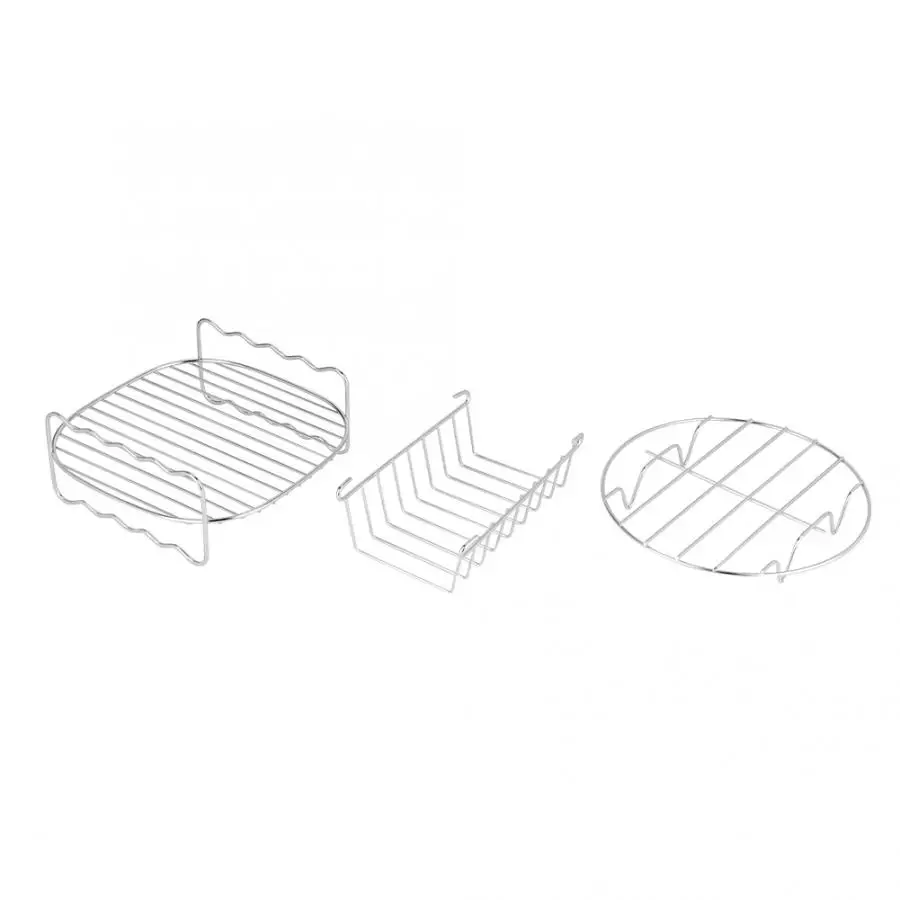 Высококачественная 304 пищевая нержавеющая сталь, Нетоксичная, безопасная и долговечная в использовании. Прочный, антипригарный горшок, термостойкий, все аксессуары безопасны для мытья в посудомоечной машине. Быстро и легко очищаются. Этот набор аксессуаров для воздушной фритюрницы включает в себя 12 различных инструментов, удовлетворяющих ваши различные потребности в приготовлении пищи. Используйте эти аксессуары, чтобы сделать картофель фри, пиццу, блину и другую любимую еду. Лучший вкус с меньшим количеством жира, использование горячего воздуха для жарки означает меньше масла, меньше жира, а также меньше беспорядка и запаха.