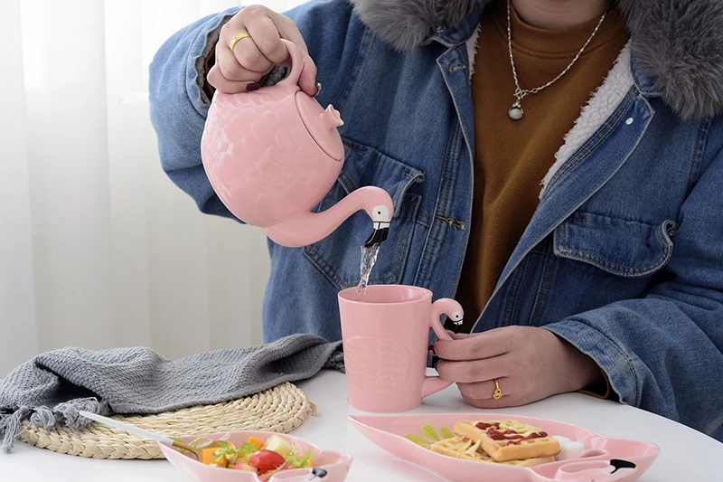 Креативный керамический чайный набор фламинго