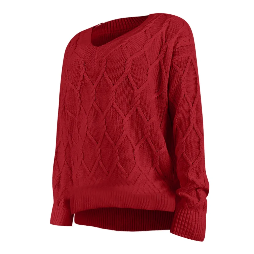 Женский Повседневный пуловер с v-образным вырезом, однотонный свободный свитер с длинным рукавом, блузка, топы