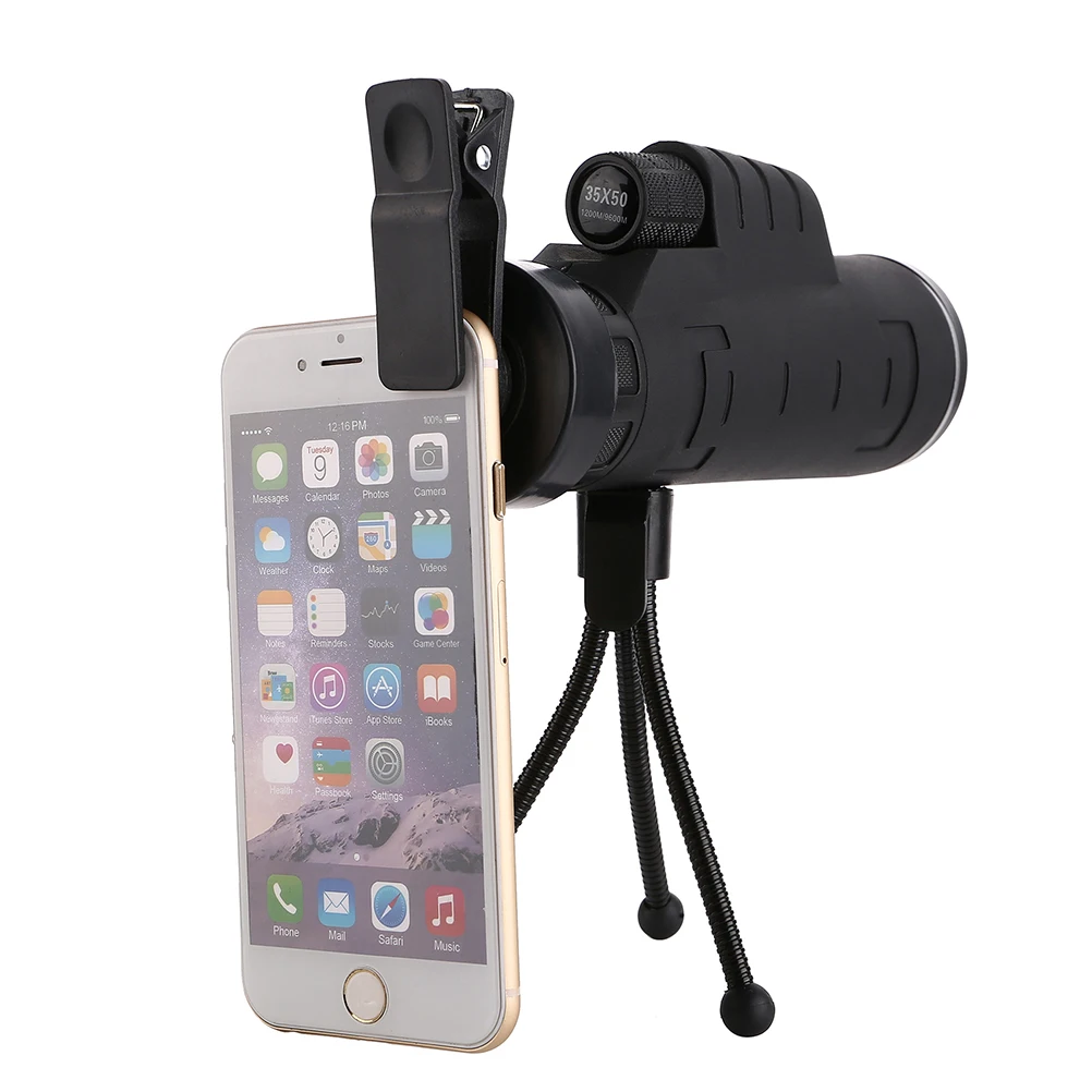 Регулируемый монокулярный телескоп 35X50, мощный широкоугольный зрительный прицел для охоты на открытом воздухе, кемпинга (черный)