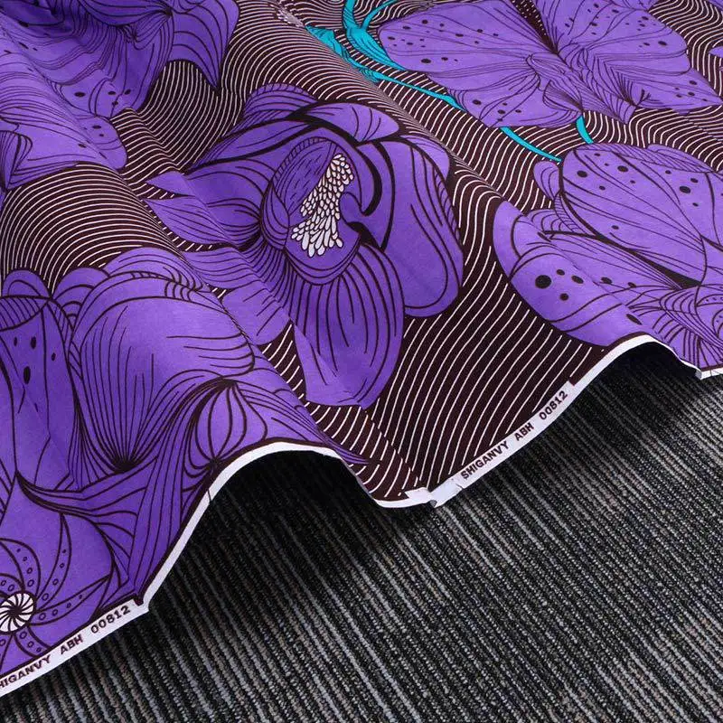 She Love 1Yard Ankara African Cotton Flower Print Fabric Purple Real Wax Sewing Fabric For Party Dress Making Accessories
