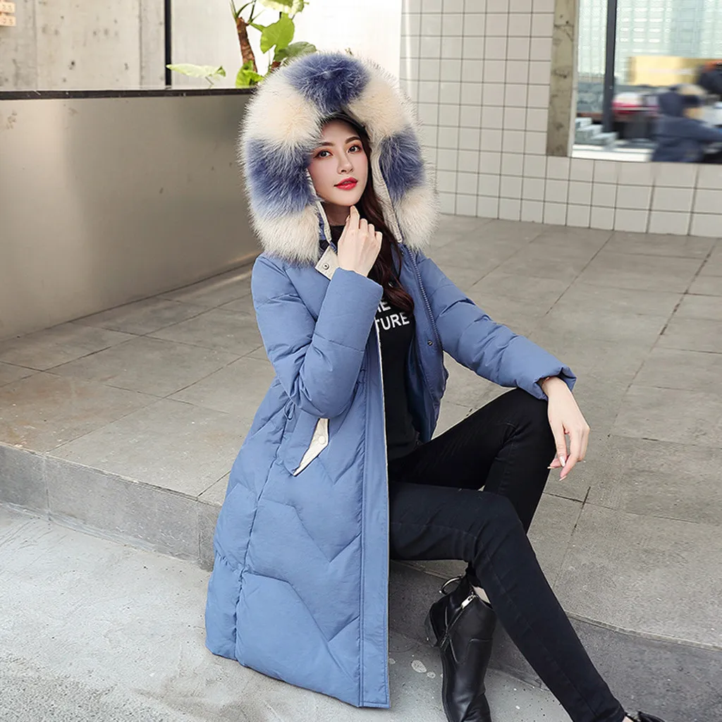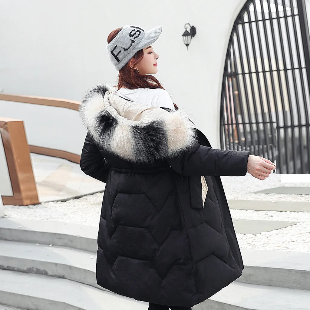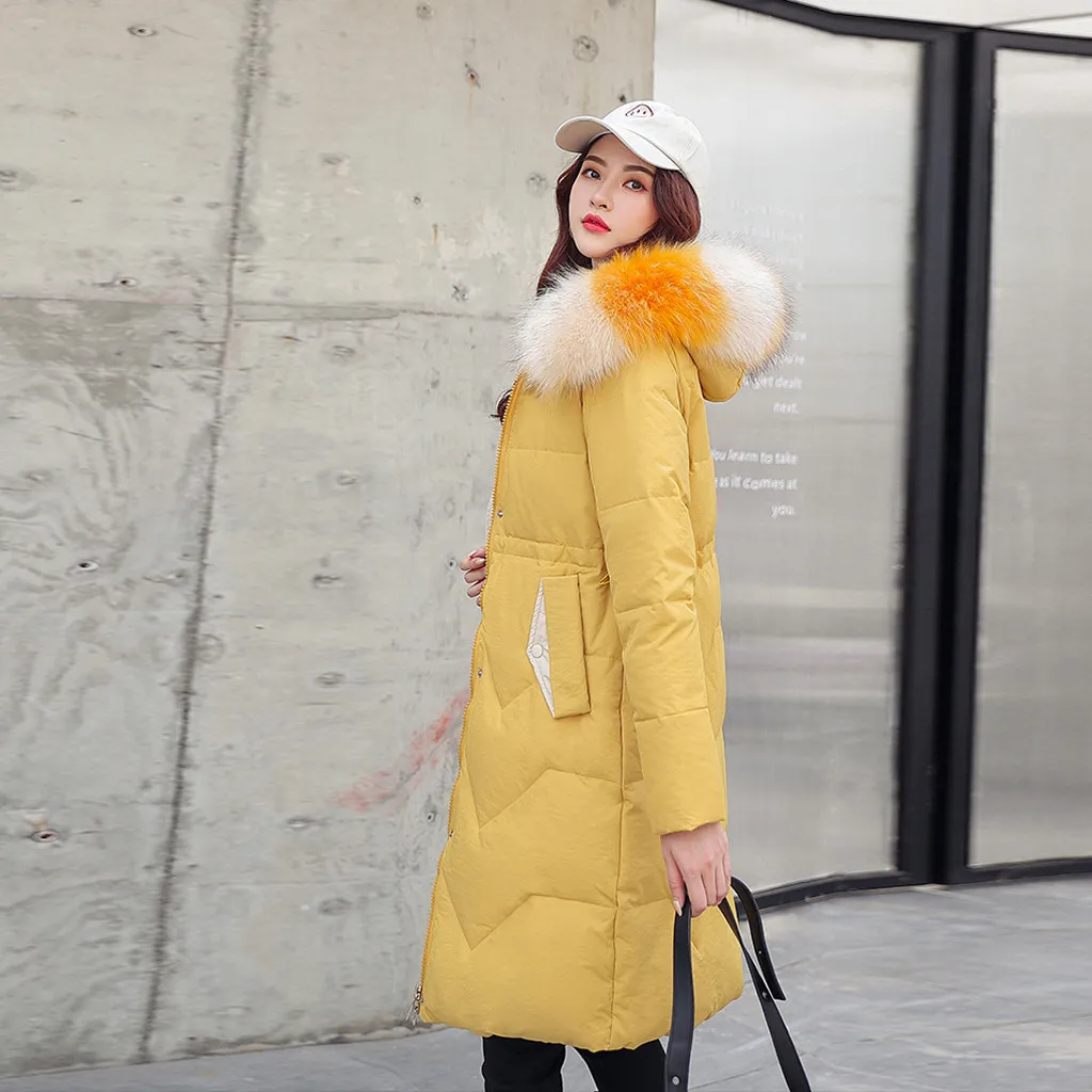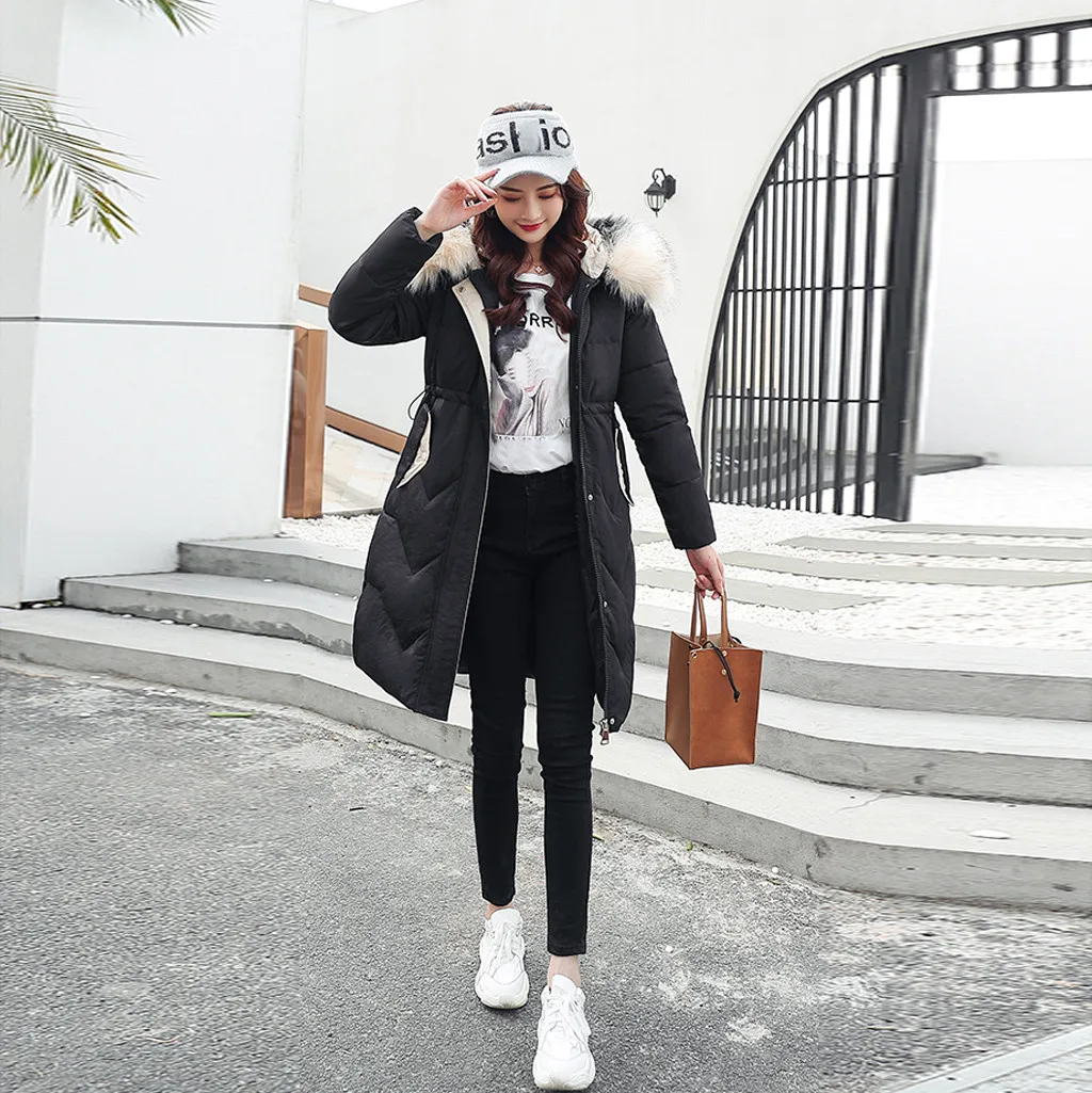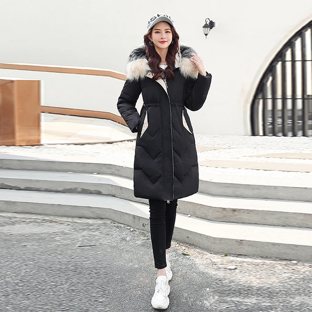 Женская зимняя теплая куртка с капюшоном и толстым искусственным мехом, теплая тонкая куртка, длинное пальто
