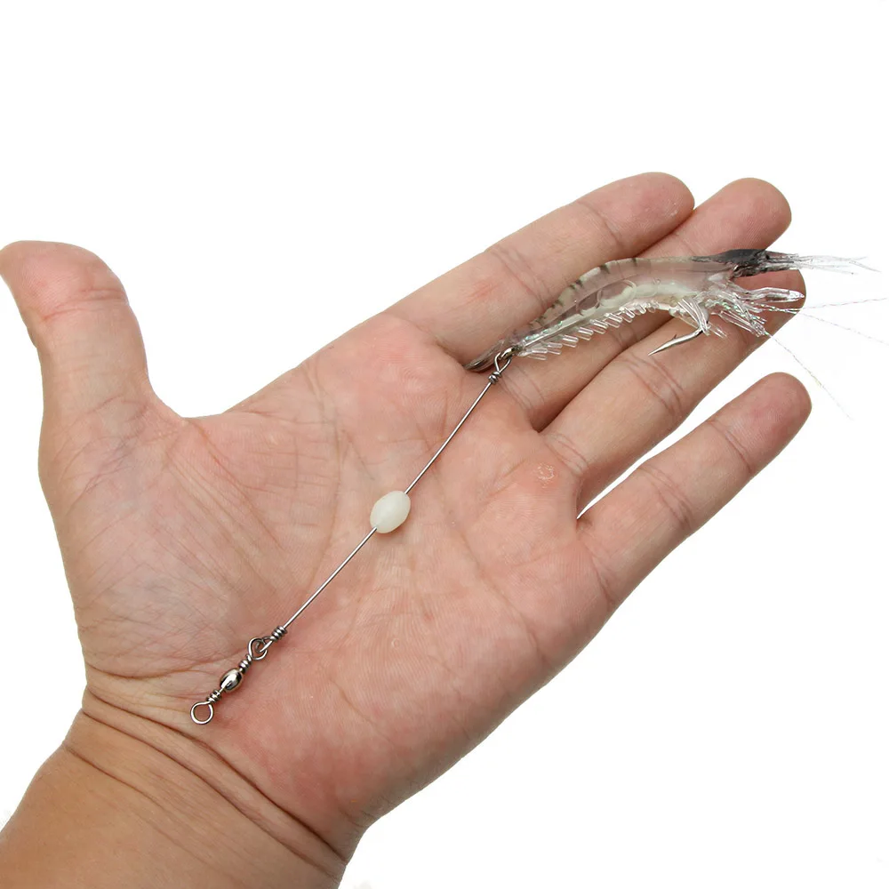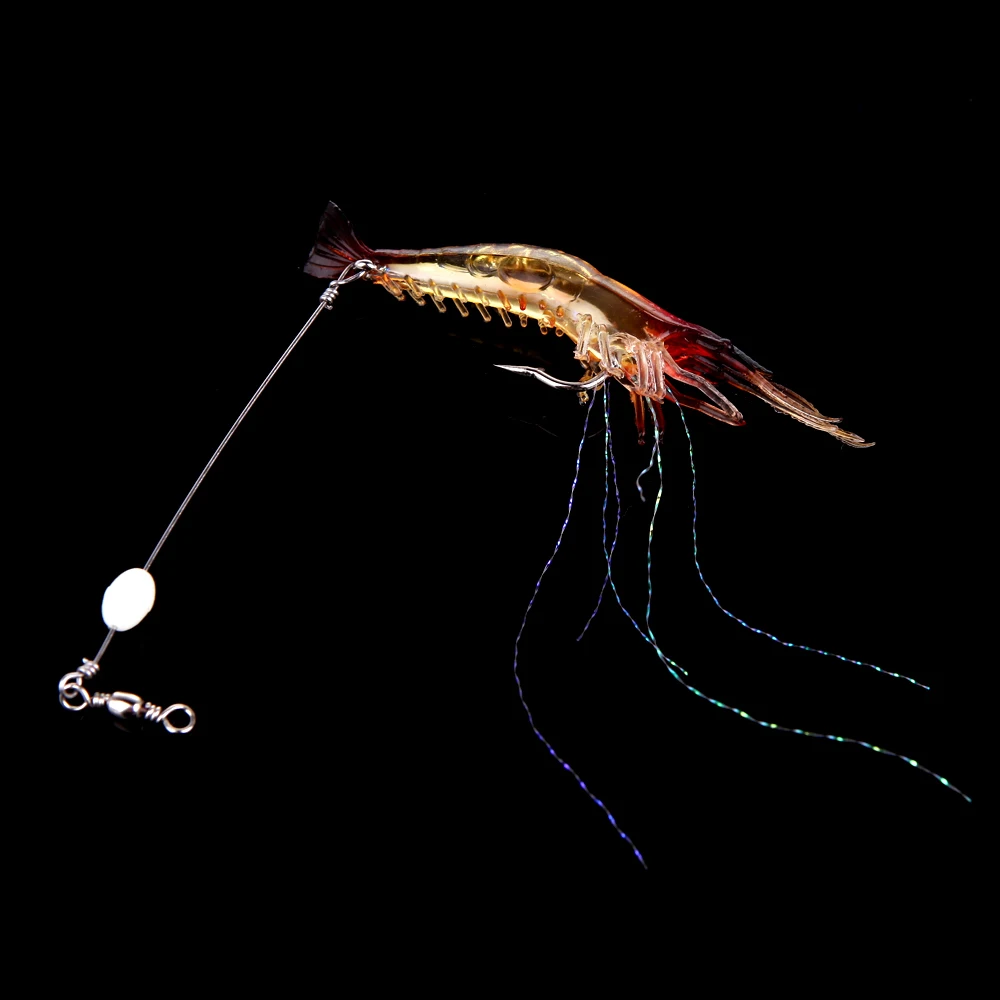 Светящийся материал, завернутый в корпус креветок, делает его подходящим для ночной рыбалки.