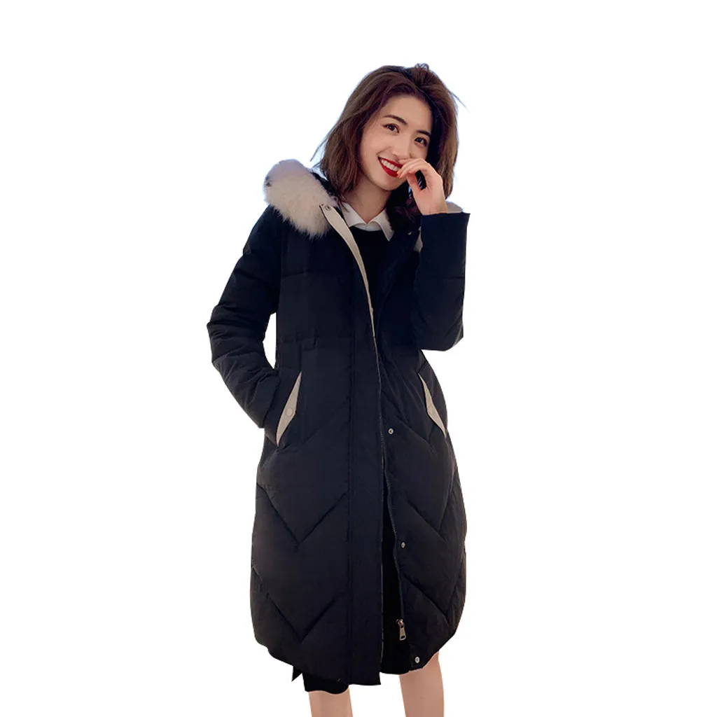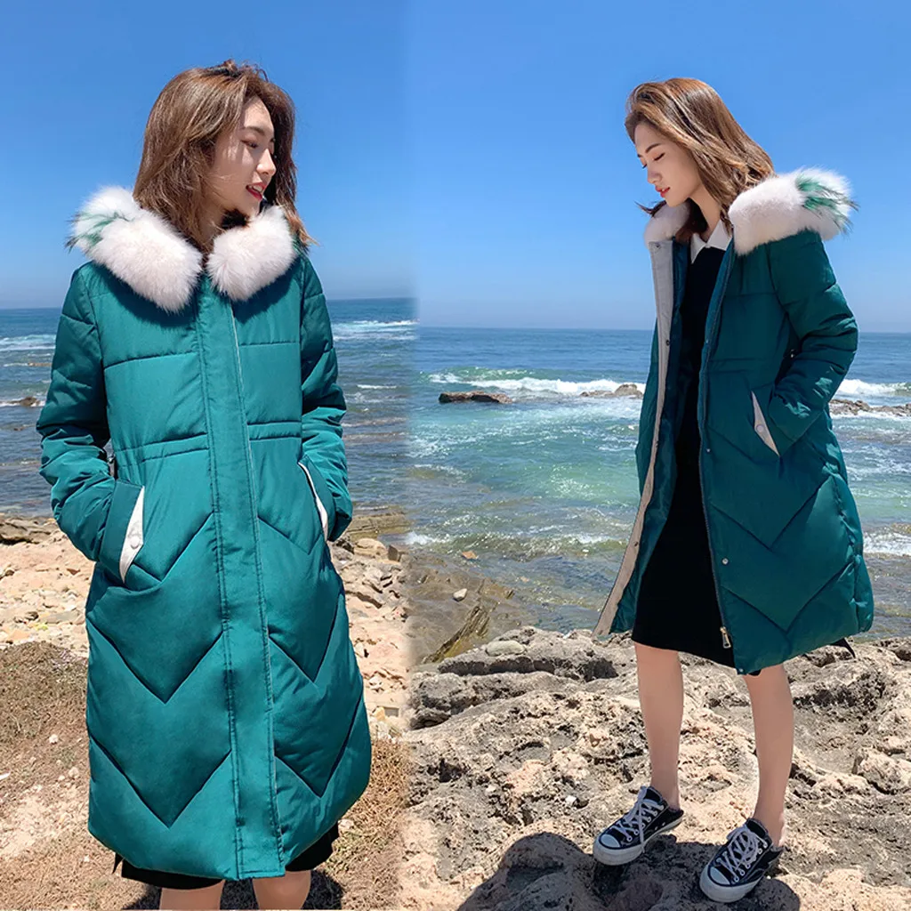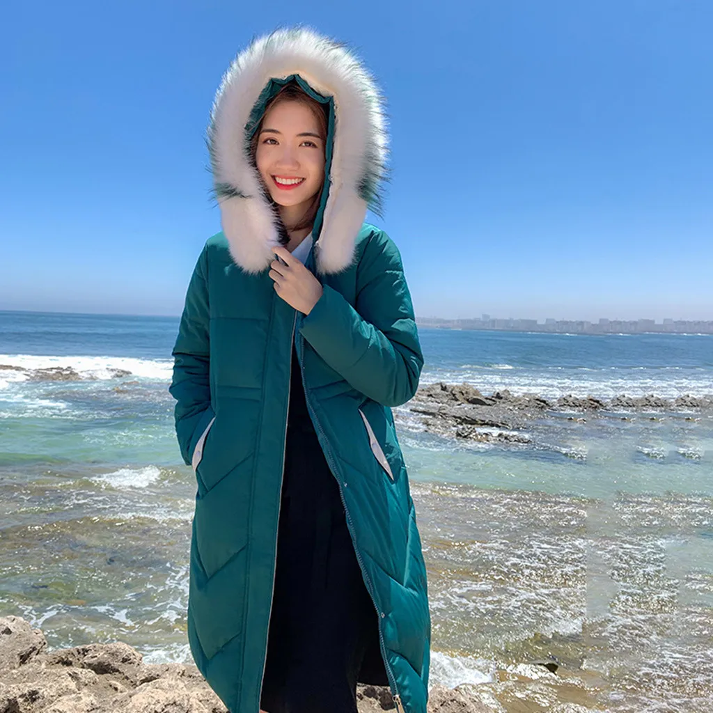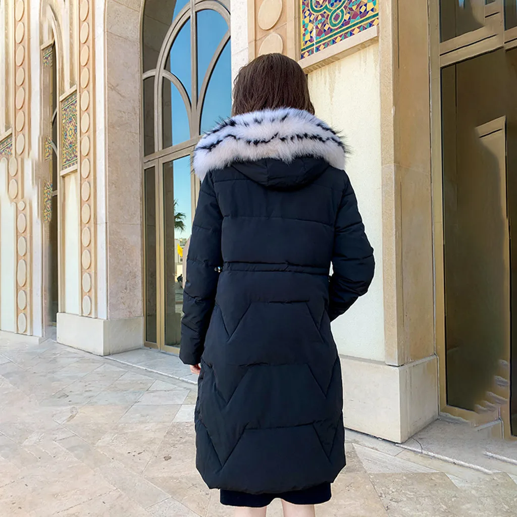 Женская зимняя теплая куртка с капюшоном и толстым искусственным мехом, теплая тонкая куртка, длинное пальто