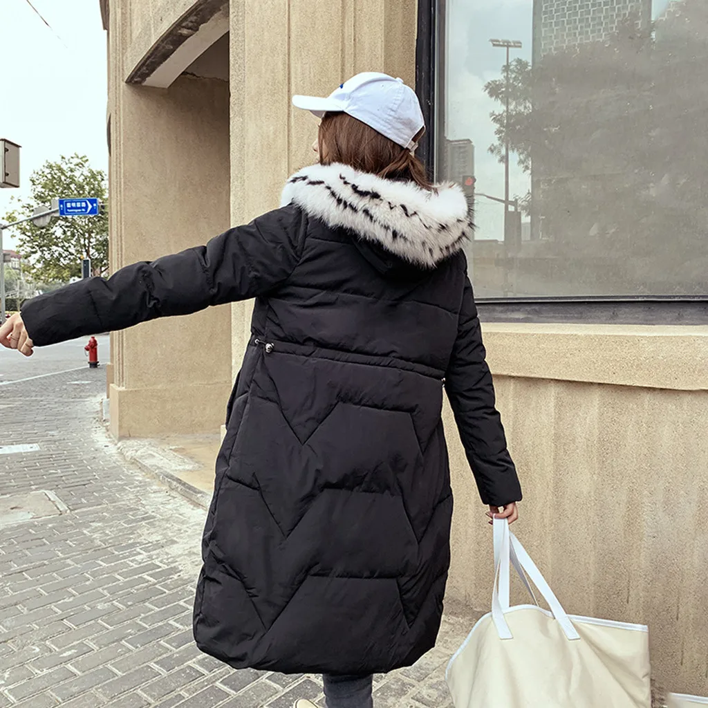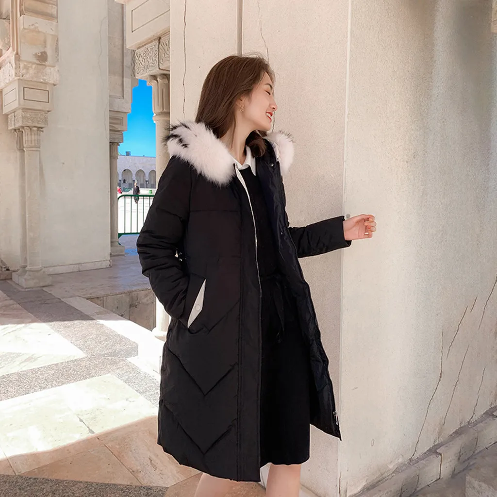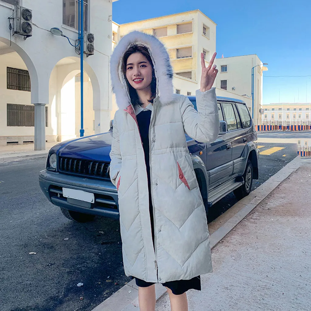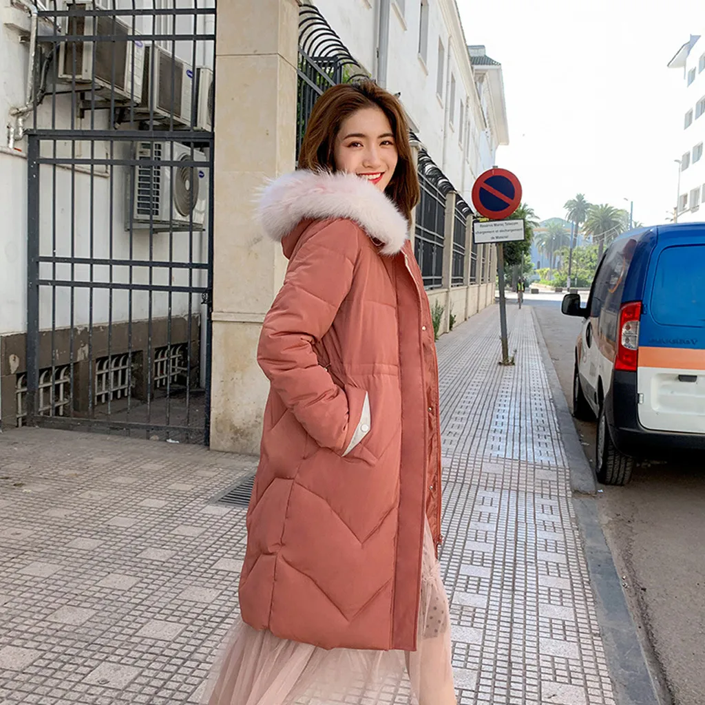 Женская зимняя теплая куртка с капюшоном и толстым искусственным мехом, теплая тонкая куртка, длинное пальто