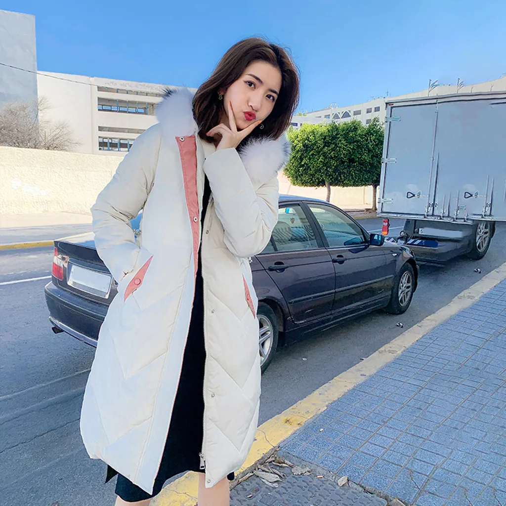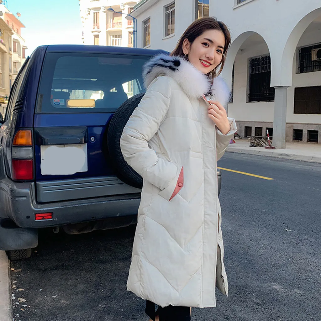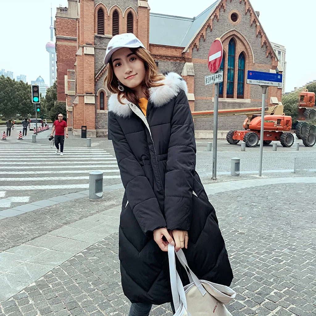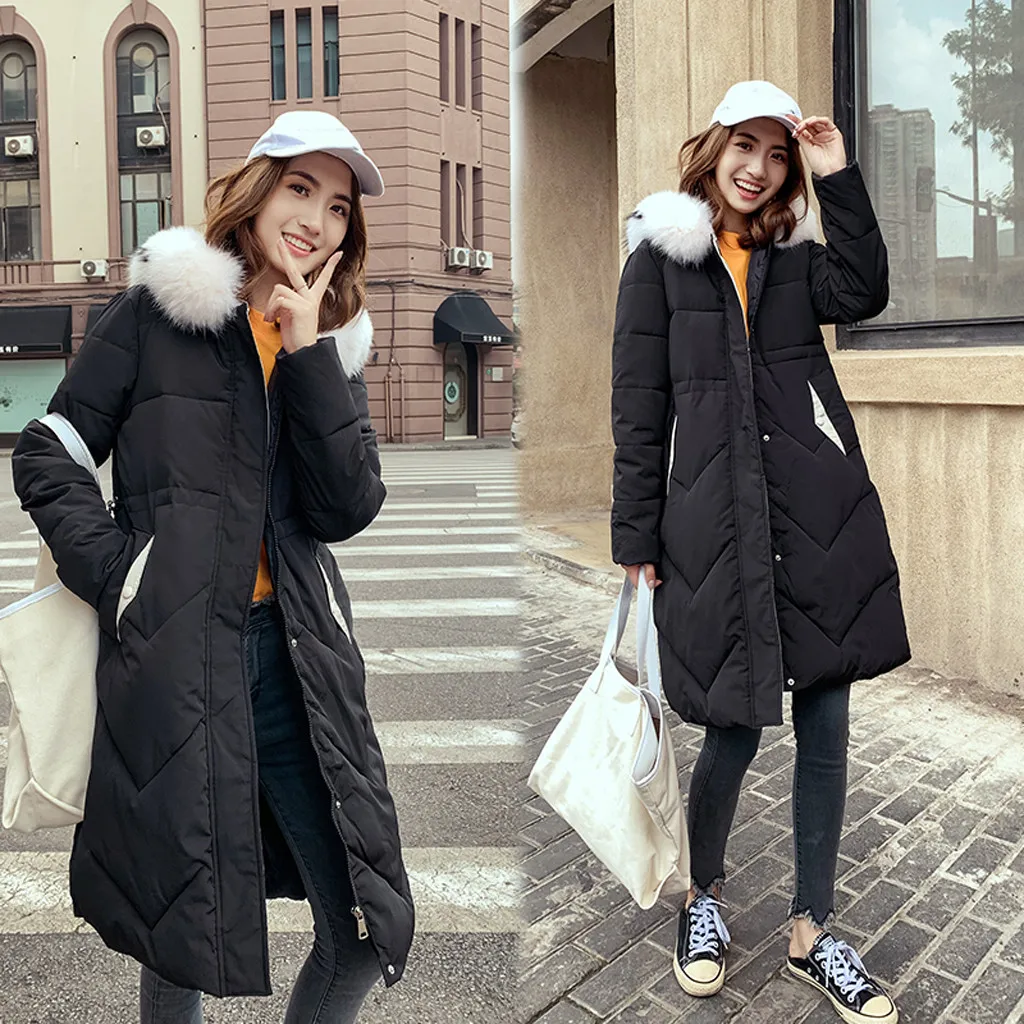 Женская зимняя теплая куртка с капюшоном и толстым искусственным мехом, теплая тонкая куртка, длинное пальто