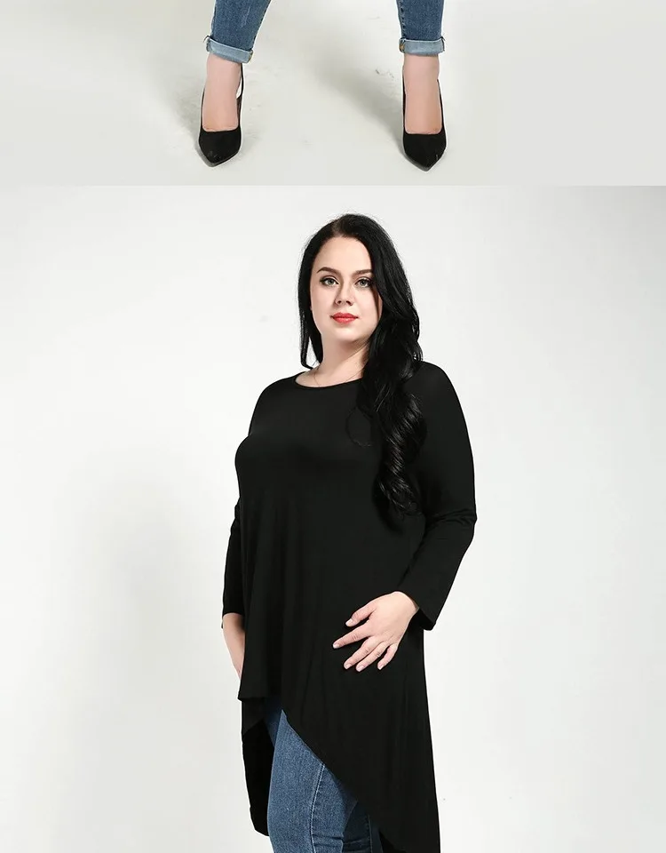 6XL Плюс Размер Женская Асимметричная футболка 5XL черный большой размер женские топы 2019 летние Модальные Модные Топы XXXL повседневные JR183 <