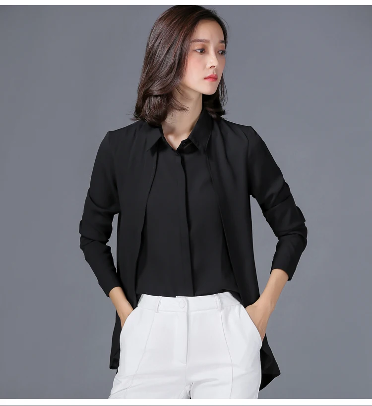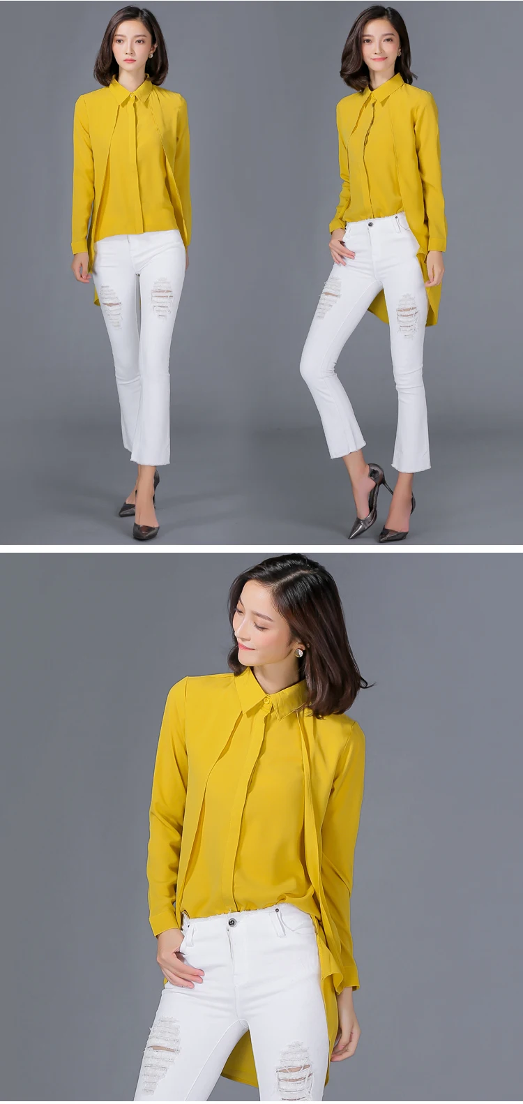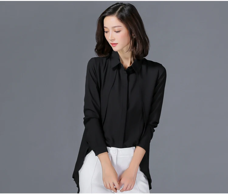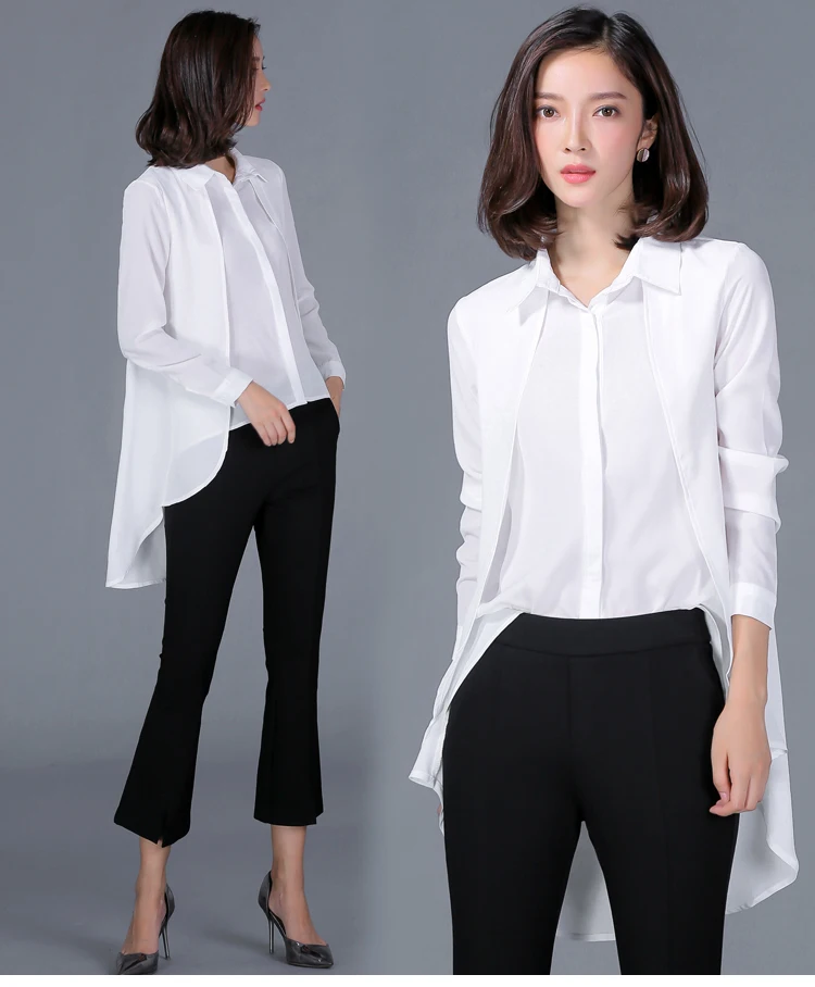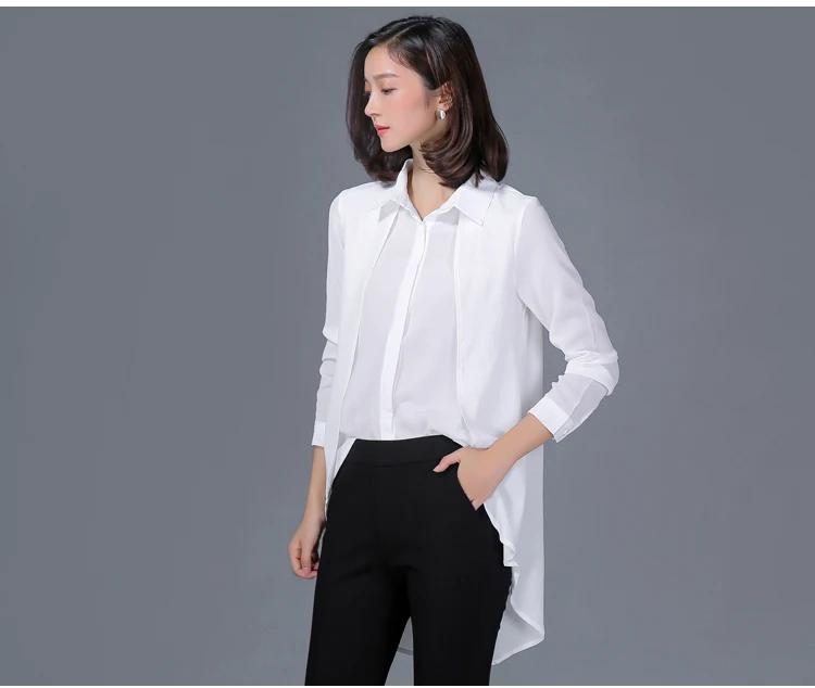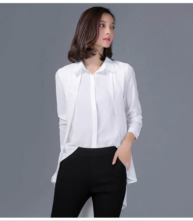 Женские однотонные повседневные блузки сзади длинное-спереди короткое ласточкин хвост Дамская OL Деловая одежда панельные рубашки с длинными рукавами Топы E623 <