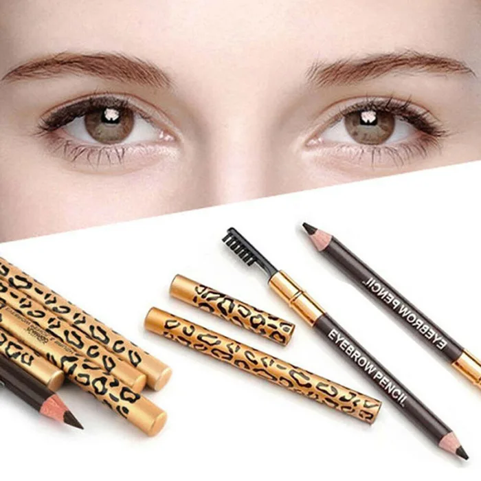 Description High Quality 1pcs Leopard Eyebrow Pencil Waterproof Sweatproof Longlasting Make Up Tool Double Head With Brush Eye Brow Cosmetics 1 x eyebrow pencil