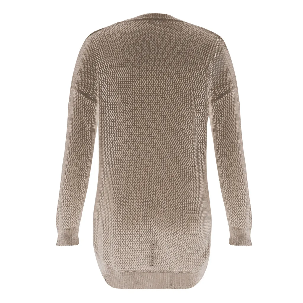 Женский модный однотонный вязаный пуловер, ажурный свитер с длинным рукавом, блузка