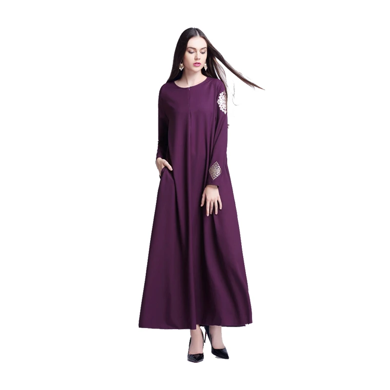 Однотонное мусульманское платье с принтом для женщин мусульманское платье абайя женское платье фотографии Турецкая абайа с длинным рукавом мусульманские платья