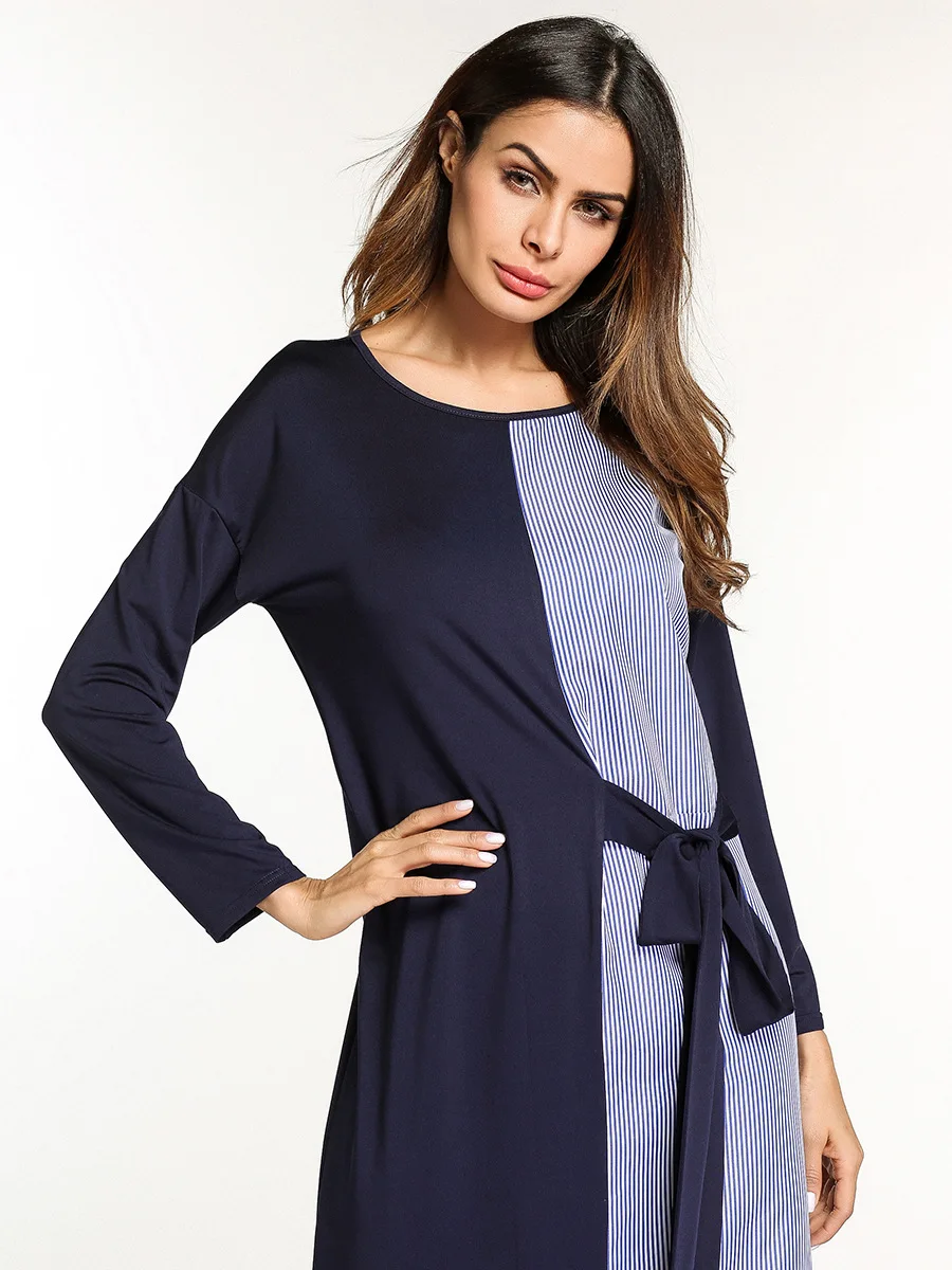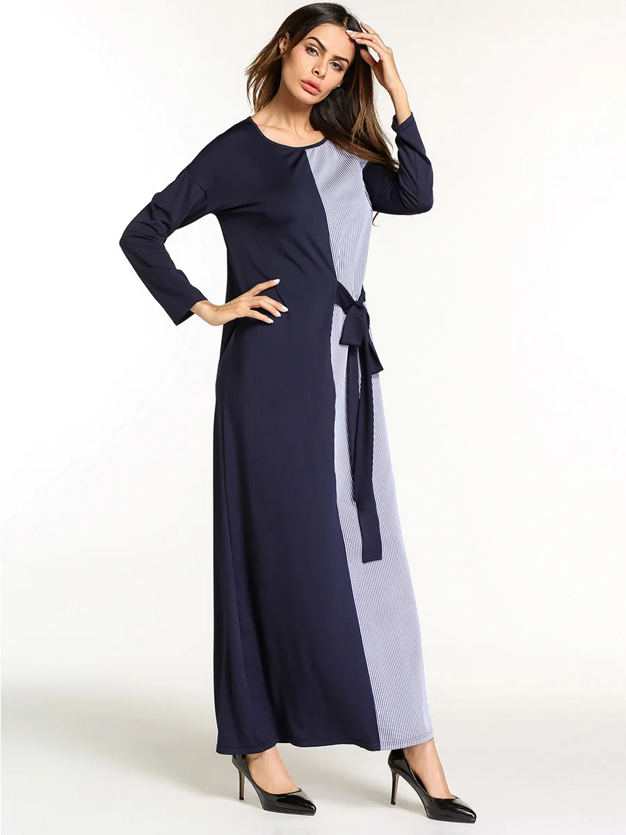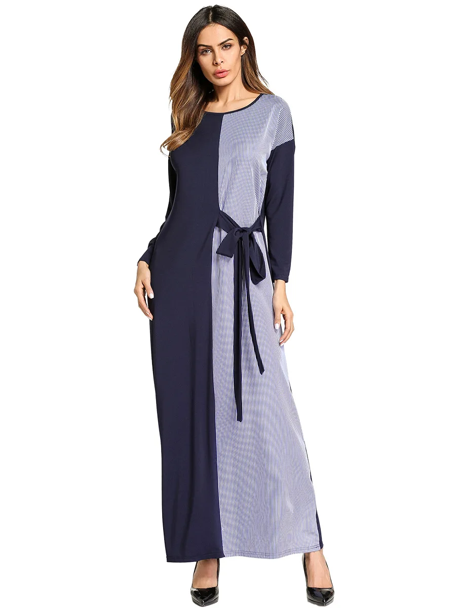 Элегантные мусульманские полосатые длинные халаты Макси платье кимоно абайя Лето Свободные Jubah Рамадан арабский турецкий Исламская, молитвенная одежда