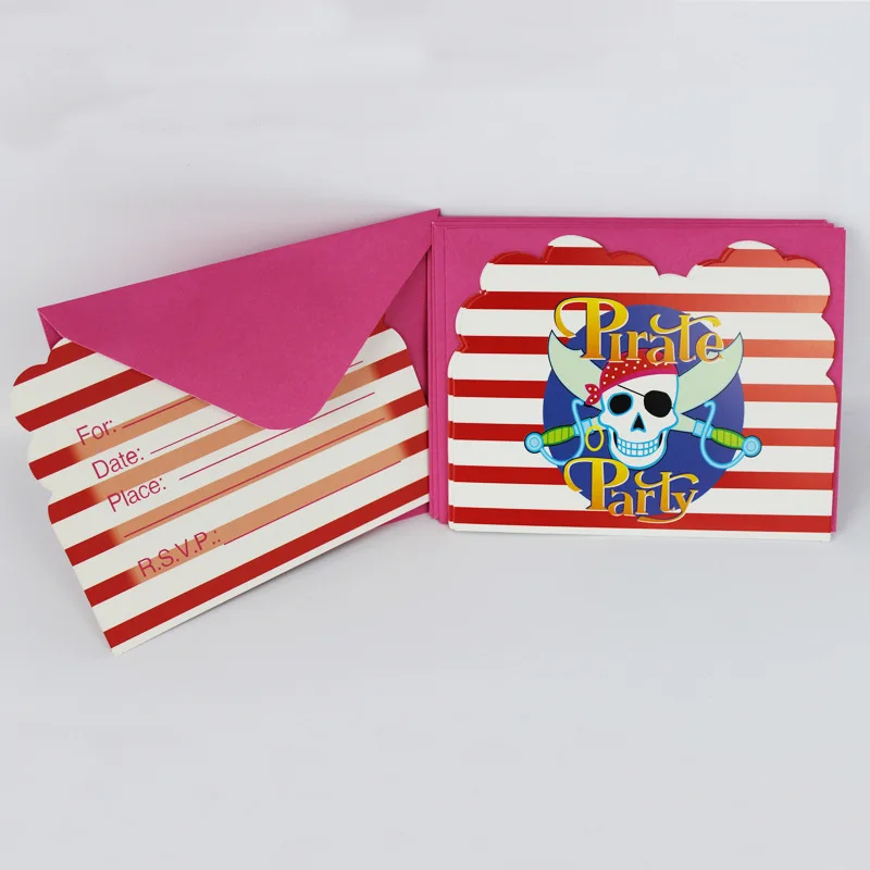 6 шт./лот, Пиратская тема, бумажные Пригласительные открытки, вечерние украшения на день рождения, свадьбу, вечерние принадлежности для детей