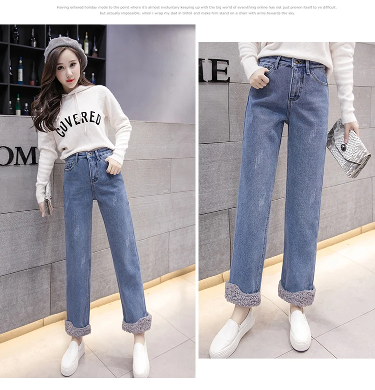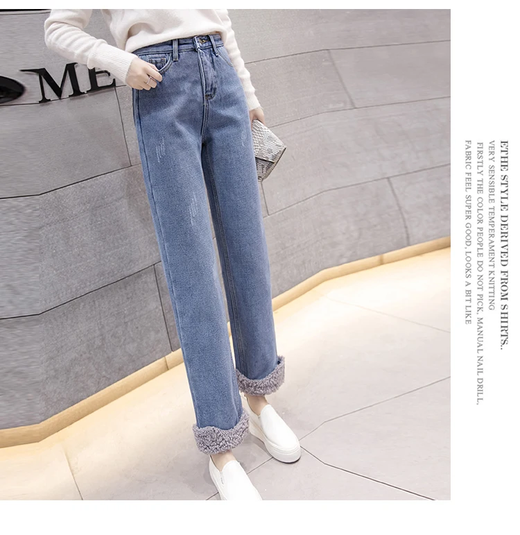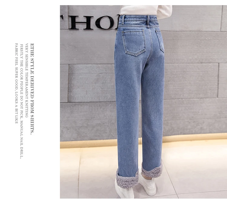 Плюс бархатные толстые женские джинсы теплые брюки с высокой талией ковбойские брюки стрейч джинсы брюки зимние джинсы-карандаш DF547 <