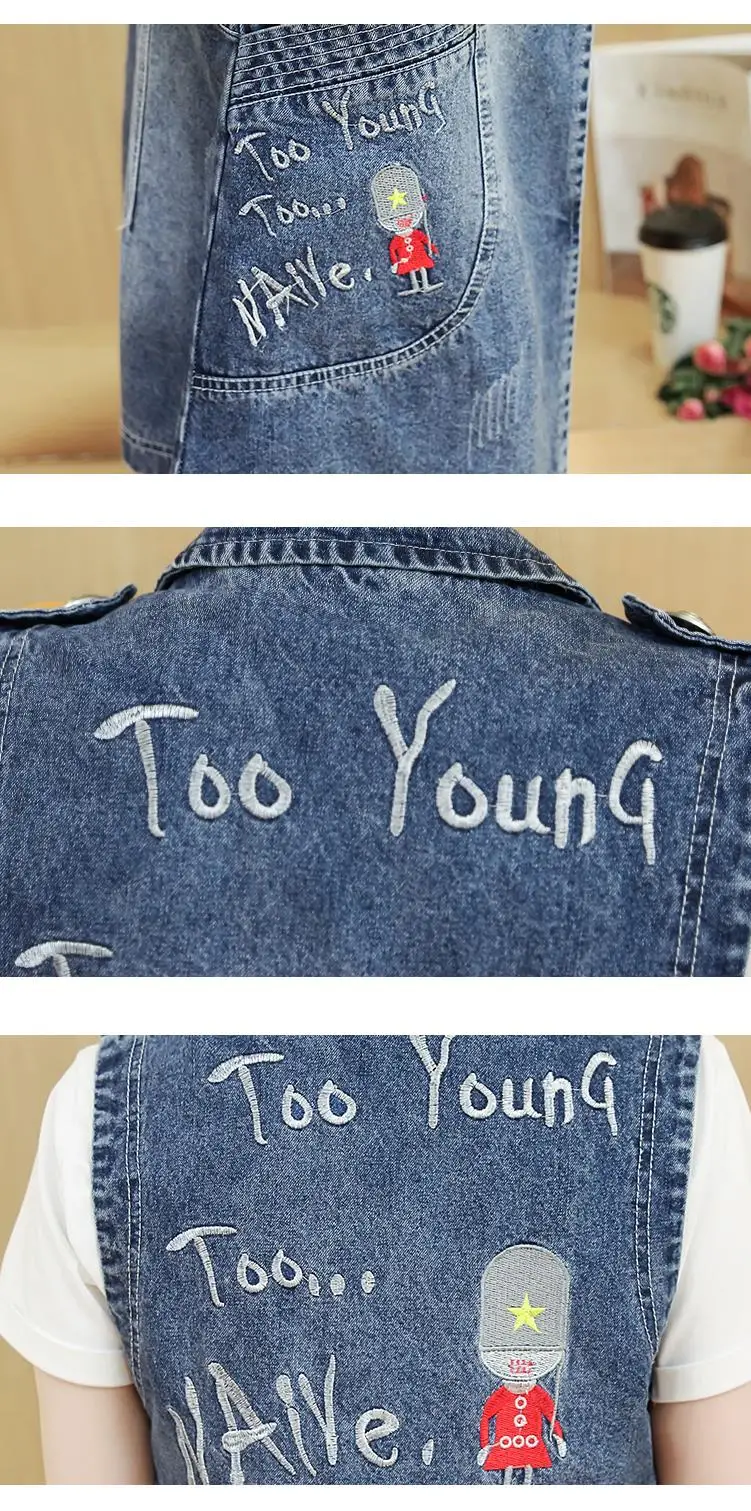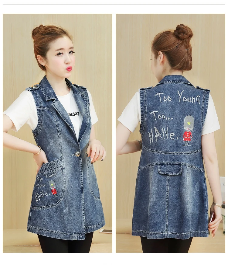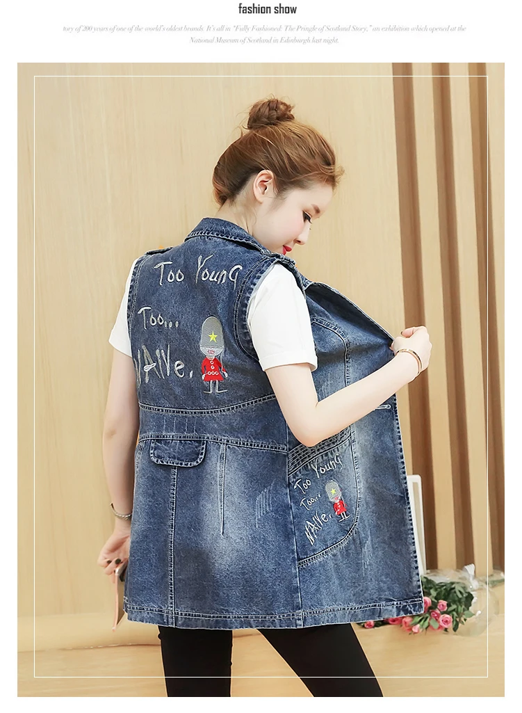 Женский джинсовый жилет, винтажная уличная одежда, весеннее джинсовое пальто с отложным воротником размера плюс 4XL, осень 2019