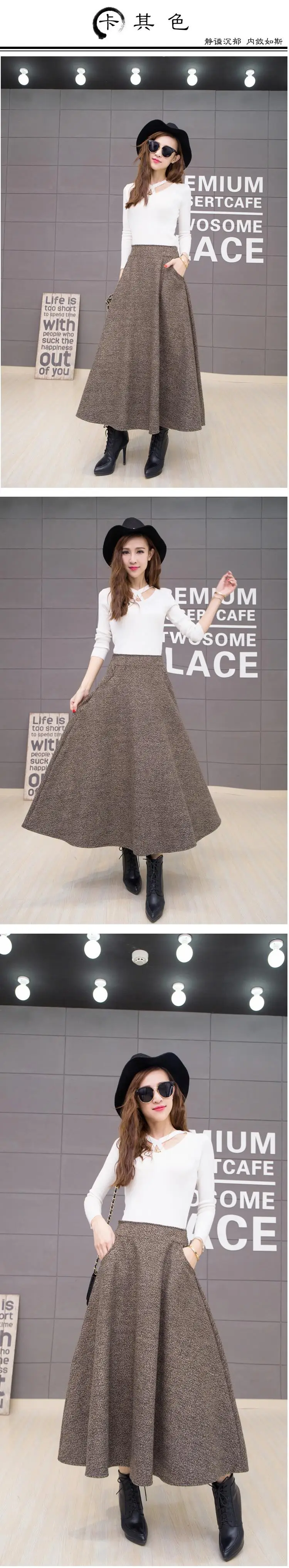 Осенняя и зимняя длинная юбка, винтажная шерстяная юбка, высокая талия, Saia Faldas, шерстяная плиссированная юбка, женская теплая длинная юбка DF574 <