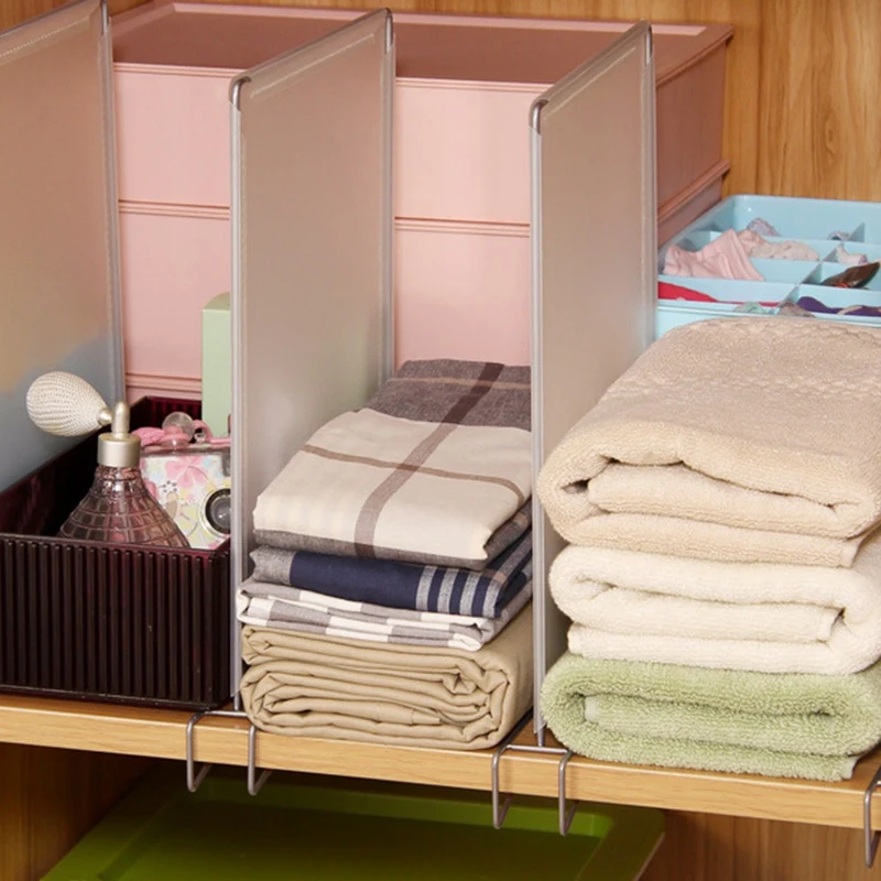 Помогает поддерживать складывающиеся предметы, чтобы они не свалились. Избавьтесь от зацепок и держите одежду в форме и чистке с этим набором разделители полки.