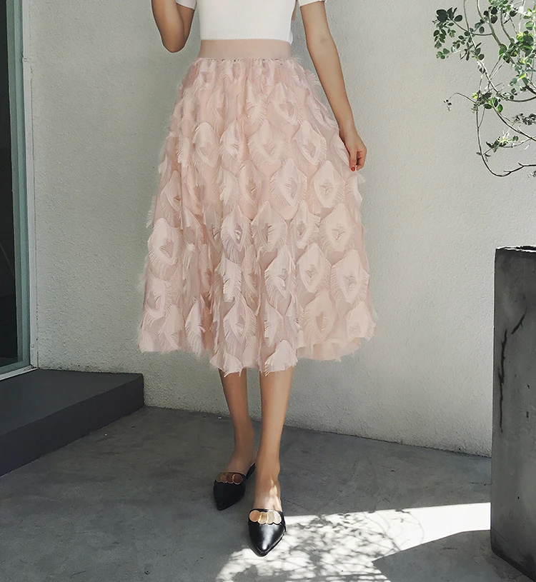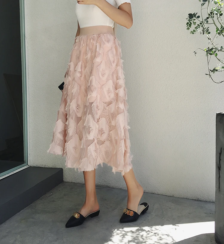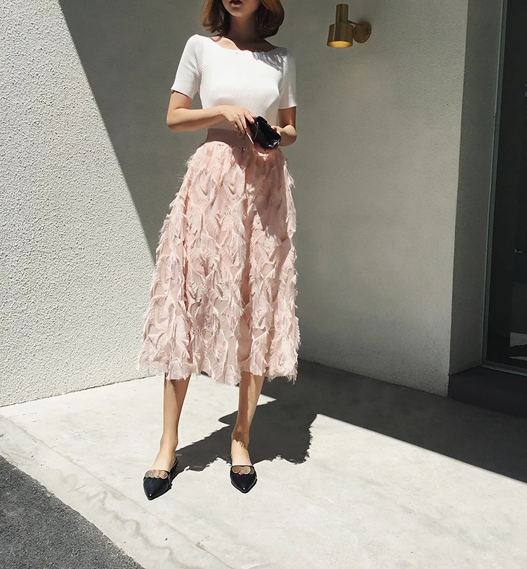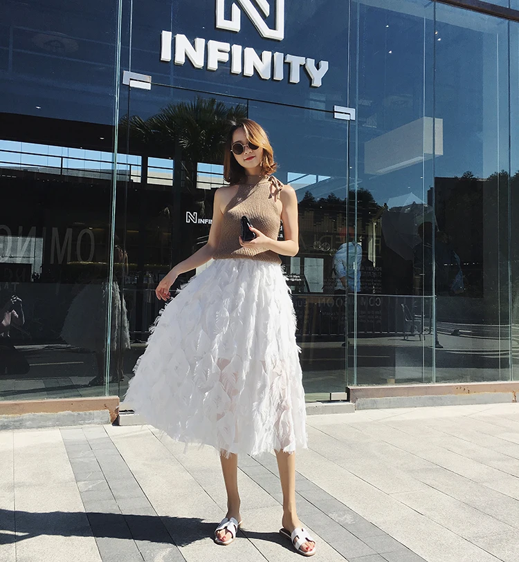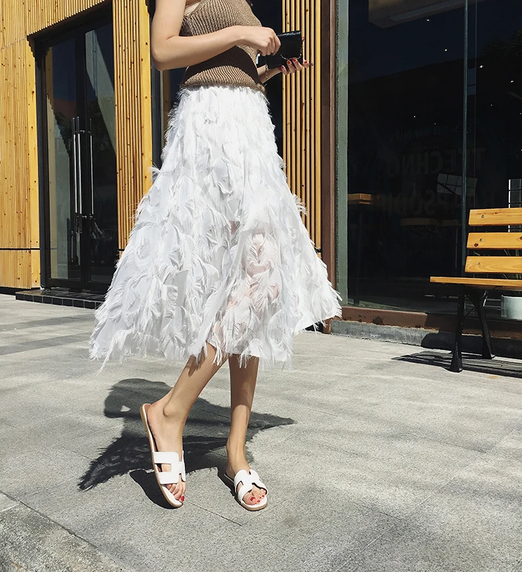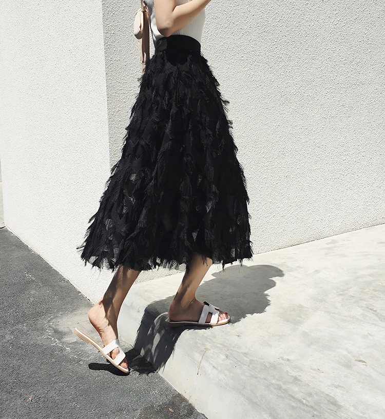 2019 новые юбки женские модные длинные юбки с перьями и кисточками с эластичной резинкой на талии винтажная изящная белая черная Юбка-миди Saias LJ283 Измерение: (Единица измерения: см)РазмерОбхват талииДлинаНа один размер больше60-9072