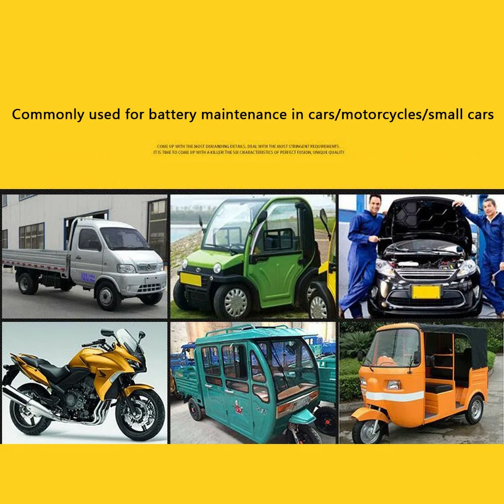 SK064601 Название продукта: Автомобиль Мотоцикл Универсальный Батарея Зарядное устройство Особенности: интеллигентая (ый) Термостат Зарядное устройство, подходит для детей возрастом от 12V/24V автомобилей, мотоциклов, и внедорожные транспортные средства встроенный множественное предохранение, контроль перенапряжения/Защита от перегрева/Защита от перегрузки по току/Защита от обратного соединения/Защита от короткого замыкания/Защита от низкого напряжения с алюминиевым радиатором, Он значительно продлевает срок службы зарядного устройства и прост в эксплуатации. Импульсный ремонт активирует батарею, решает проблему питания батареи, зарядки без электричества, большого внутреннего сопротивления и т. д., скорость зарядки быстрая, и эффективность преобразования высока. Входное напряжение переменного тока: 110 В/220 В Выходное напряжение: DC12V-DC24V эффективность работы: ≥ 90% вилка характеристики: правила США/Европейские правила/австралийские правила Область применения: 35AH-200AH Упаковочный лист: 1 * подсказки зарядного устройства: 1. Это зарядное устройство в основном используется для запуска батарей, таких как автомобили и мотоциклы. Автомобильные аккумуляторы должны использоваться под ручным контролем. 2. Если ваш заряженный аккумулятор-это небольшая батарея (емкость аккумулятора <60 ач), Первая зарядка, если есть горячее явление, пожалуйста, прекратите зарядку, потому что ваш аккумулятор имеет утечку, любое зарядное устройство заряжено, или аккумулятор, который был сброшен, будет иметь лихорадку. В это время ваша Зарядка батареи достигла наилучшего состояния, отключена, если прерывистая зарядка может привести к деформации батареи.