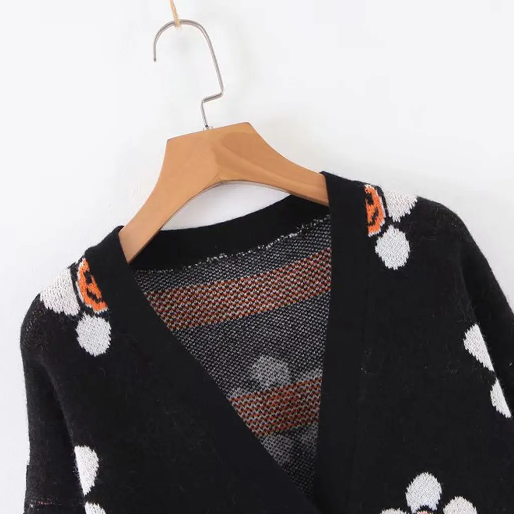 Women Casual Floral Color V Neck Long Sleeve Knitting Cardigans Coat Sweater