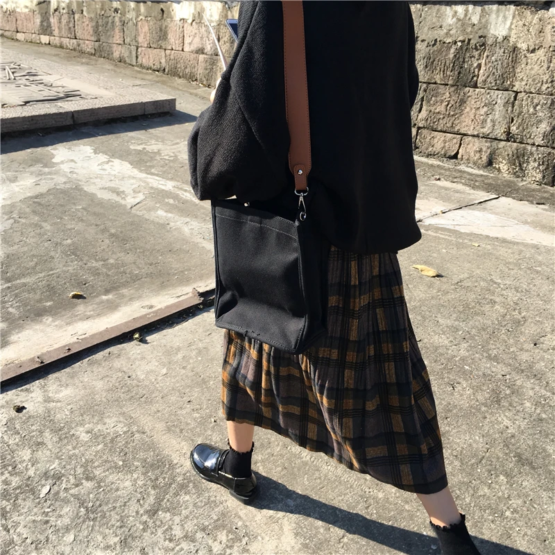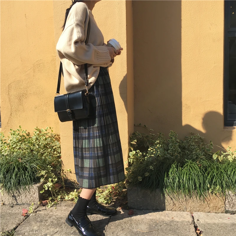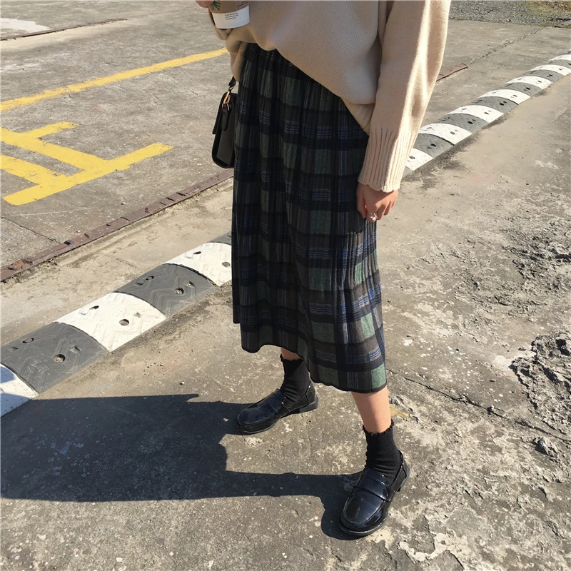2019 горячее поступление осень зима опрятный Harajuku винтажная плиссированная клетчатая юбка Свободная качественная женская длинная юбка DV55