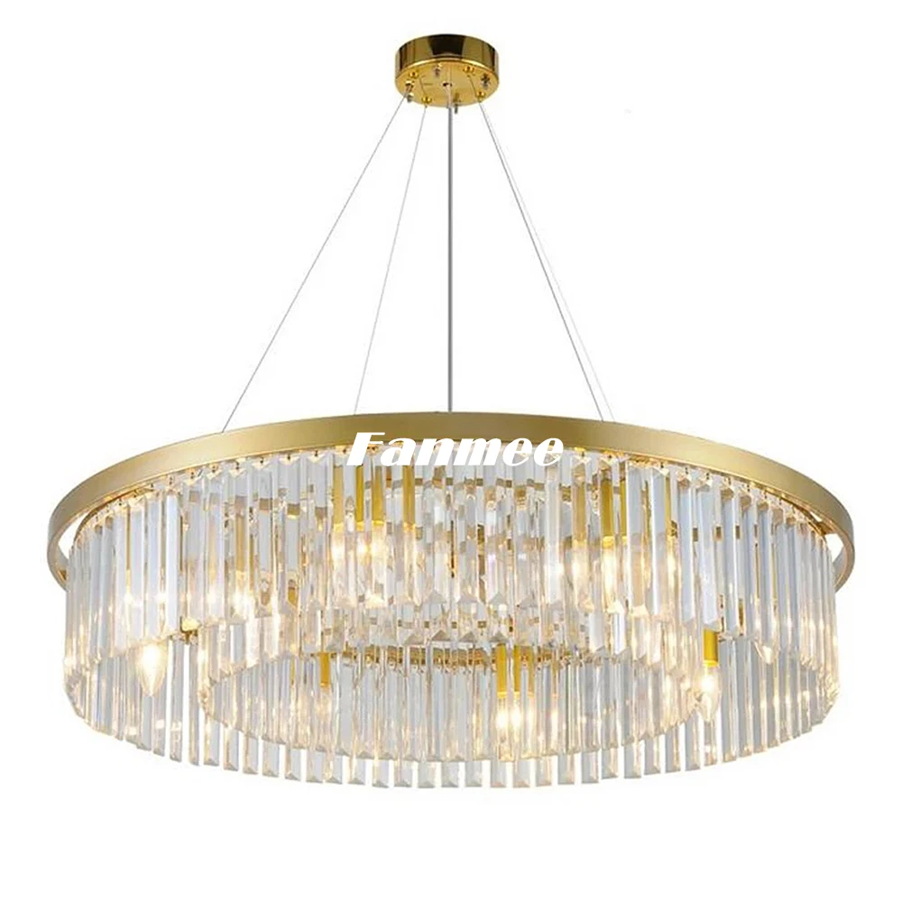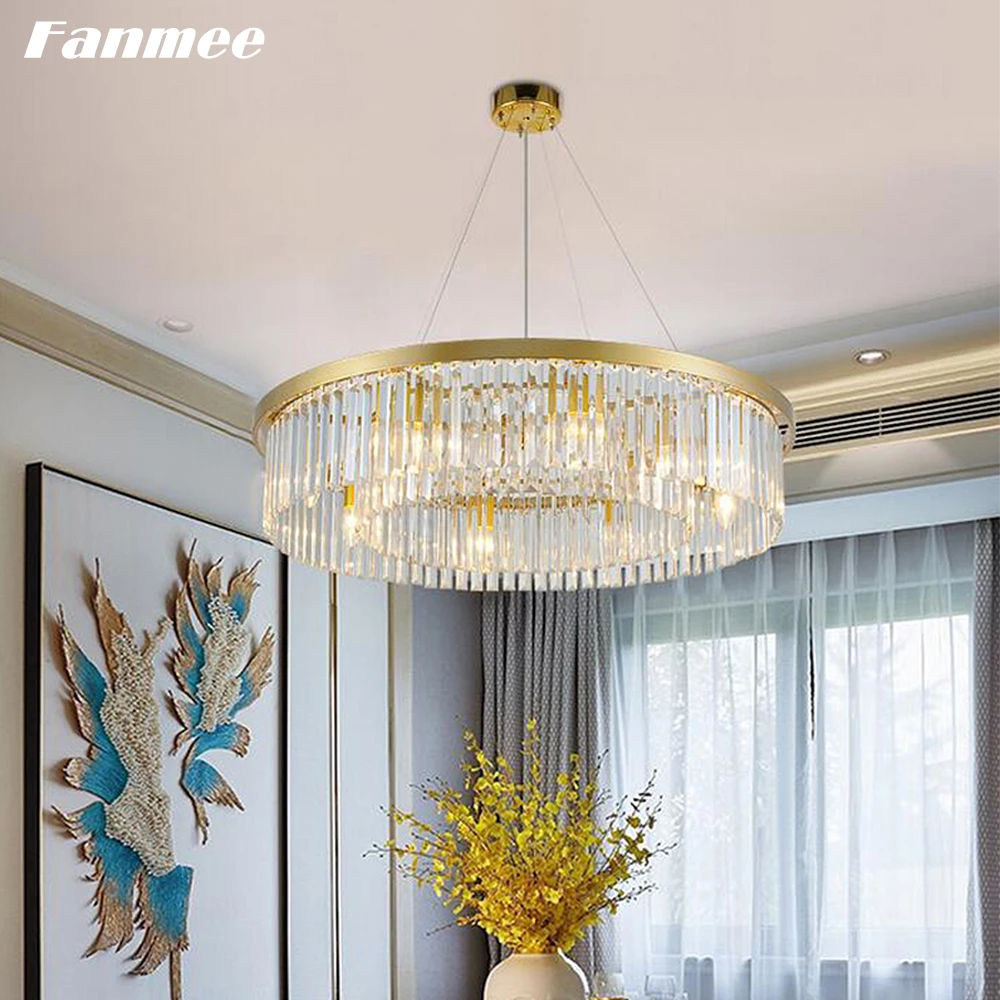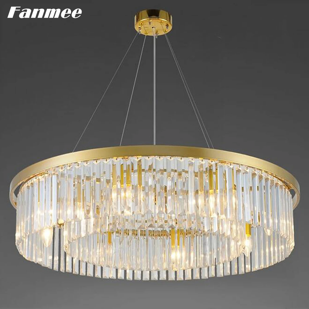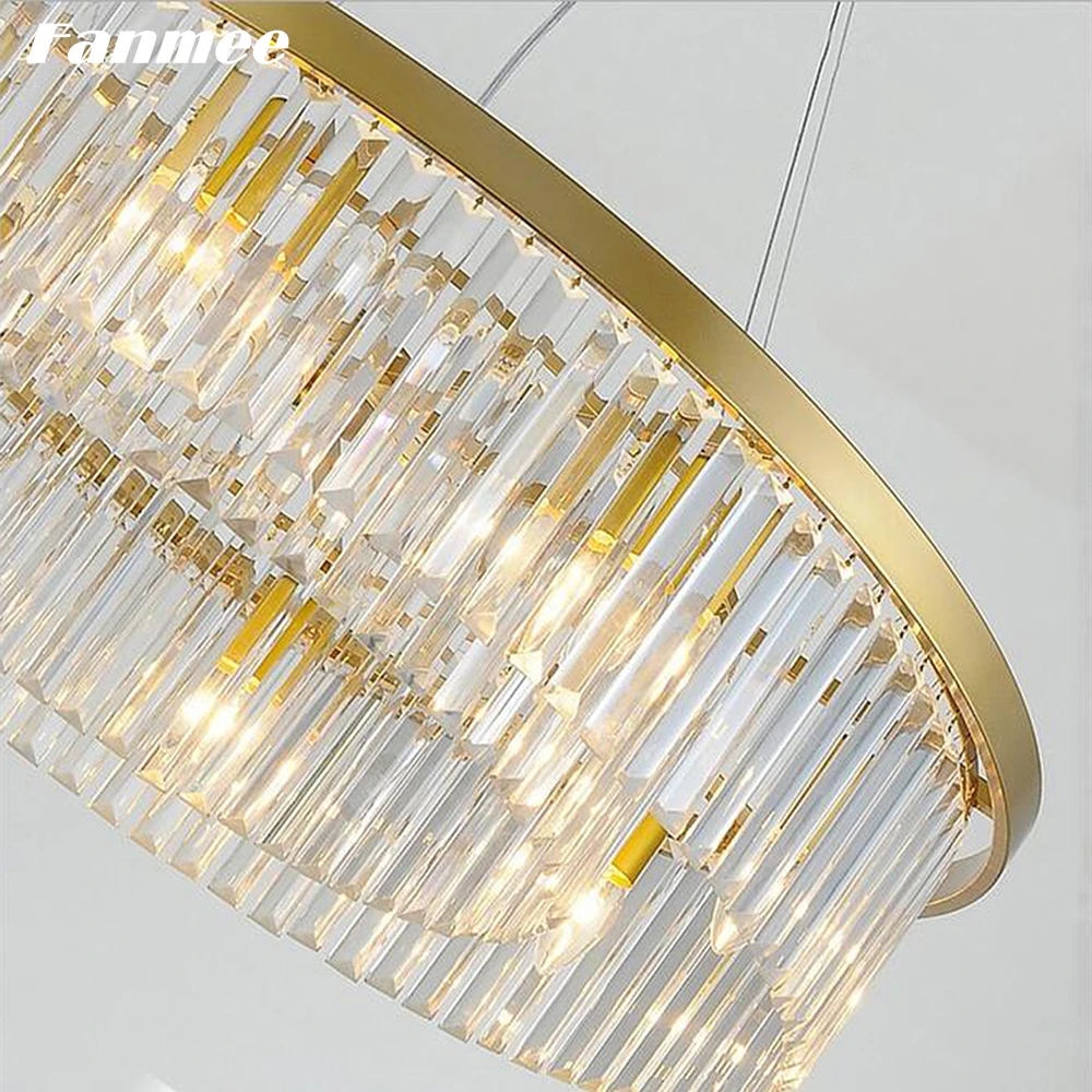 Современная люстра в золотой оправе, светодиодный круглый хрустальный светильник ильник для гостиной, арт-деко, обеденный стол, спальня, кухня, остров, дом