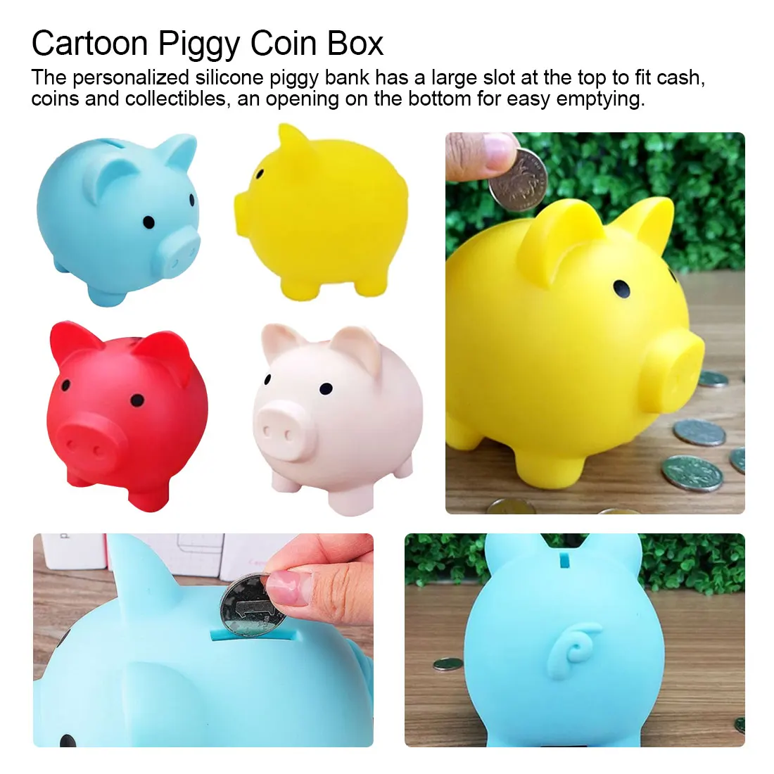 1. Превосходное качество и дизайн-Персонализированный Силиконовый Копилка имеет большой слот сверху, чтобы соответствовать наличные деньги, монеты и коллекционные предметы, отверстие на дне для легкого опорожнения.