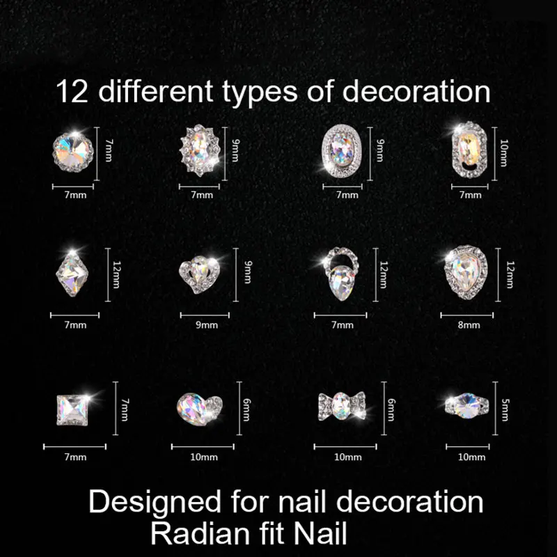 1 коробка, мульти 3d украшения для дизайна ногтей, сделай сам, кончики для ногтей, кристалл, смешанный цвет, декоративный камень для ногтей, AB, нерегулярные бусины, 12 шт., алмаз