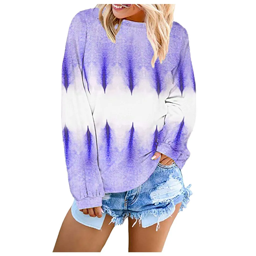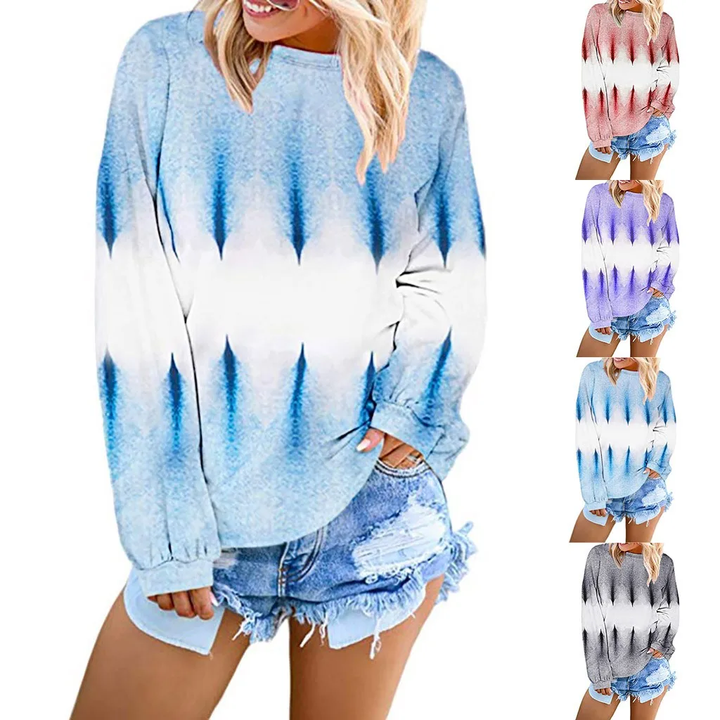 Женский Повседневный пуловер контрастных цветов с круглым вырезом и длинными рукавами