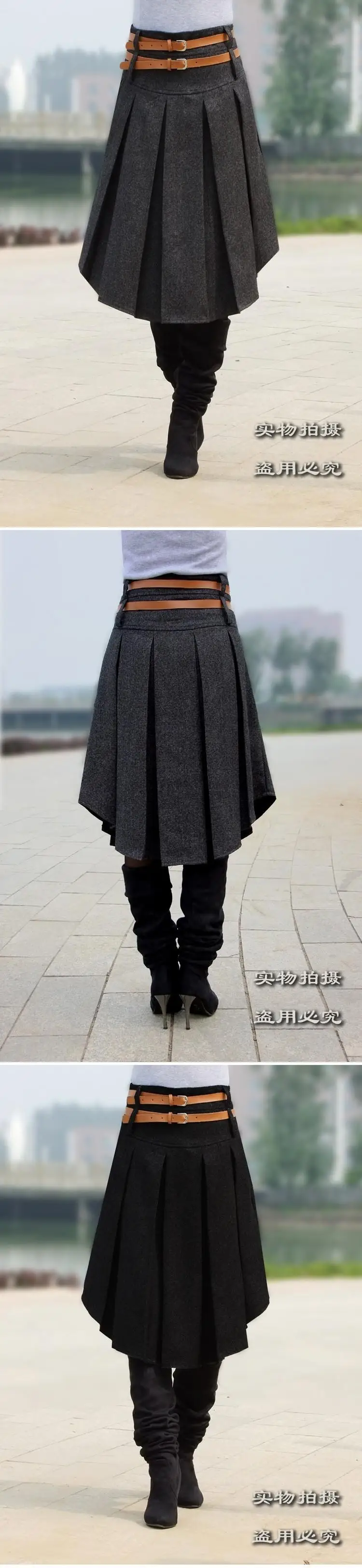 Saia de Inverno/Винтажные нестандартные женские плиссированные юбки; одежда больших размеров; короткая юбка до середины икры; Зимняя юбка; faldas mujer; CD6