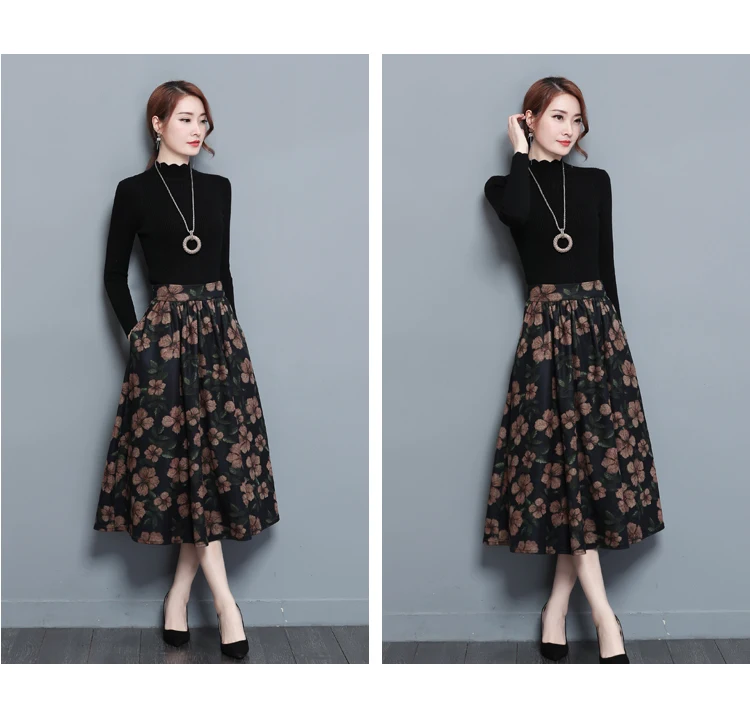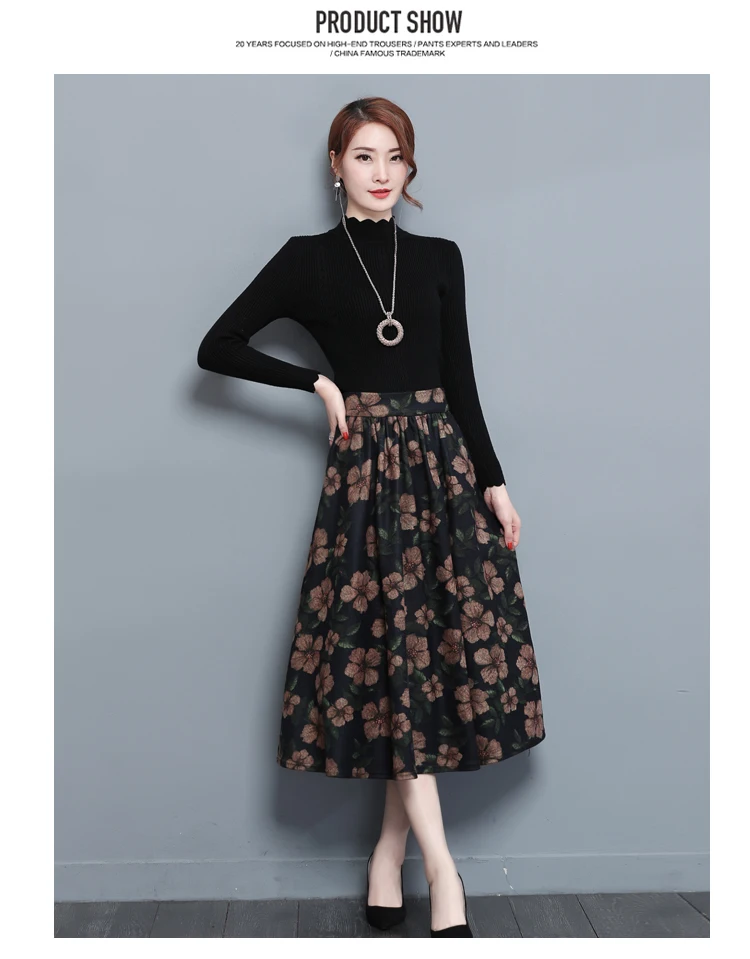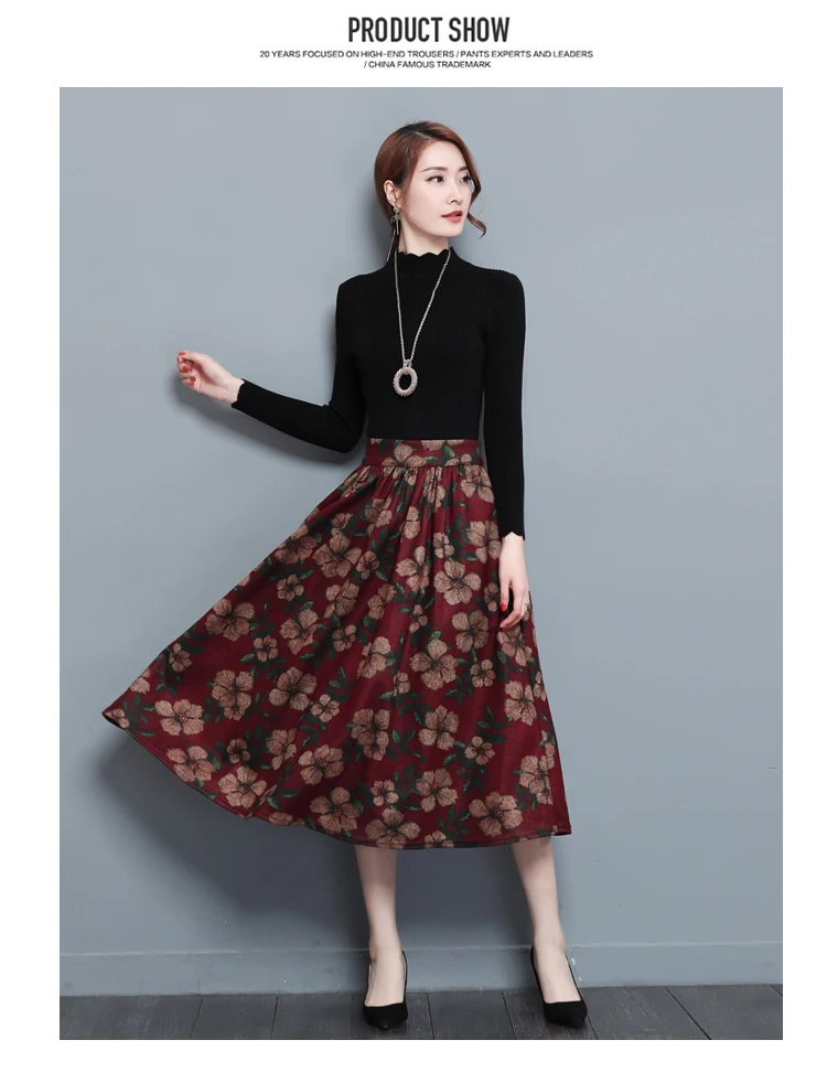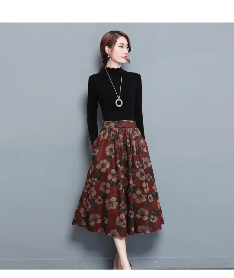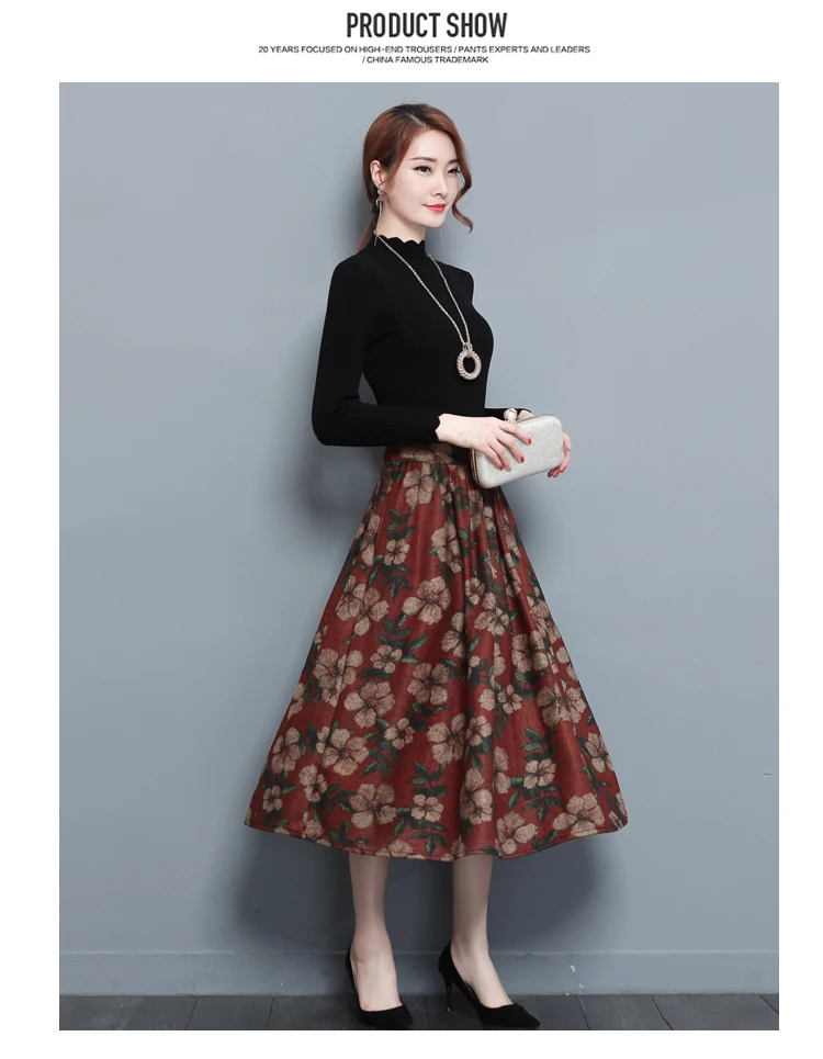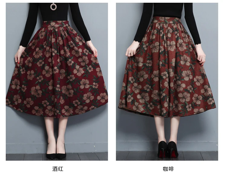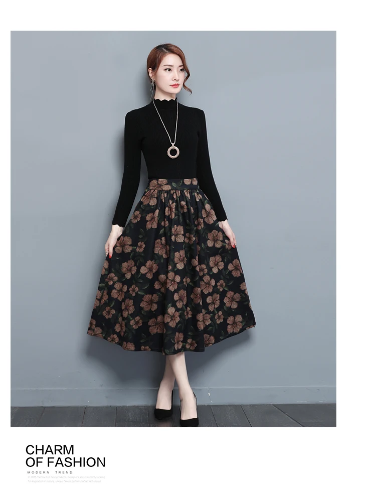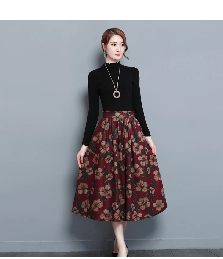 Новые осенние зимние шерстяные юбки с принтом корейские женские большие размеры с высокой талией халат офисный закрытый купальник плиссированные винтажные юбки