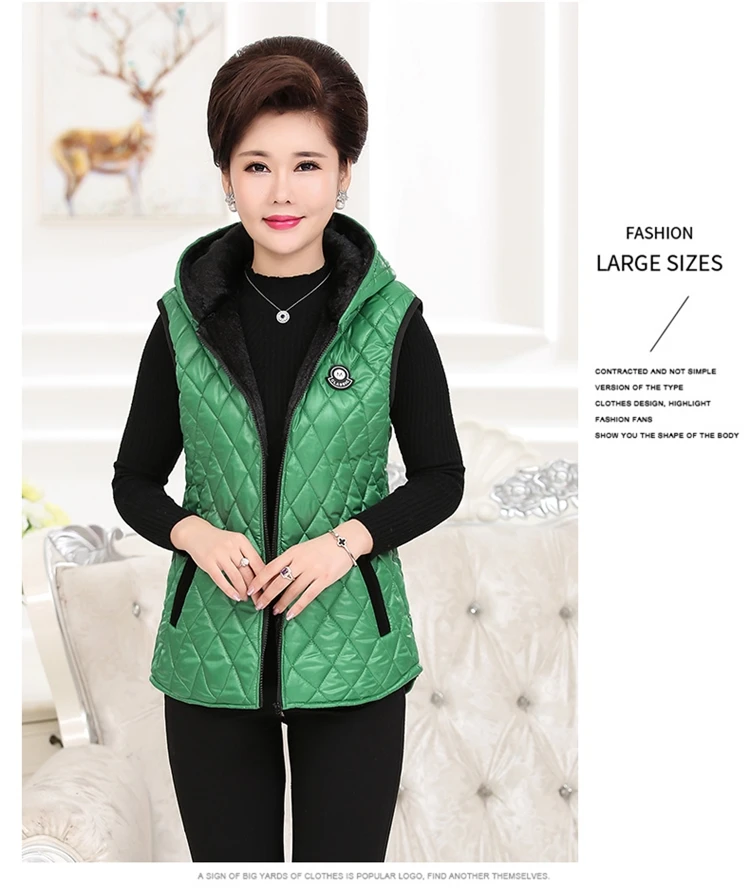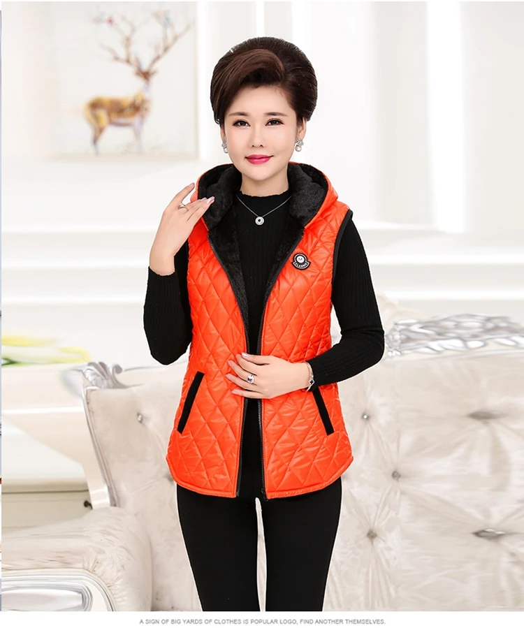 Плотная теплая клетчатая куртка без рукавов на молнии для мамы; сезон осень-зима; Женская однотонная верхняя одежда с капюшоном; DW143 <