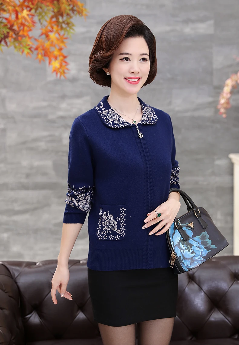 Clobee 2019 осень зима pull femme blusa tricot мать среднего возраста вязаный толстый теплый свитер женский плюс размер куртка S1197