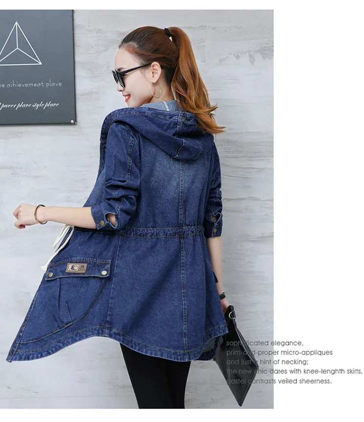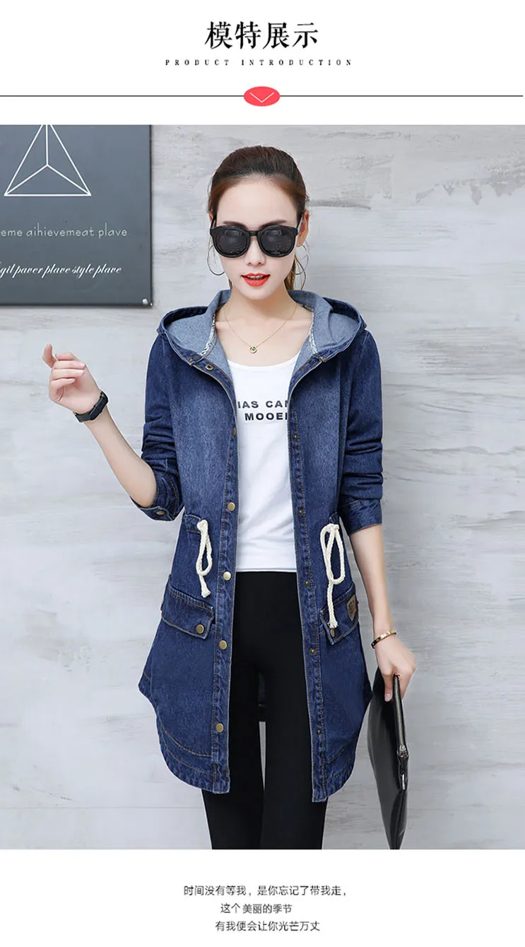 2019 женские джинсовые куртки женские с длинным рукавом с капюшоном Jaqueta джинсовая куртка плюс размер джинсовое пальто Джинсовая Верхняя одежда 3XL DF957 <