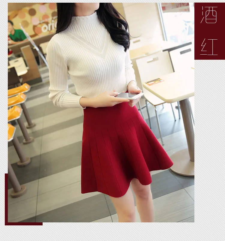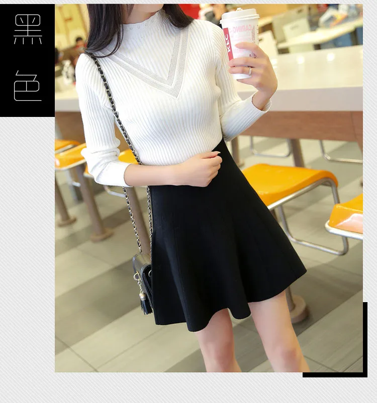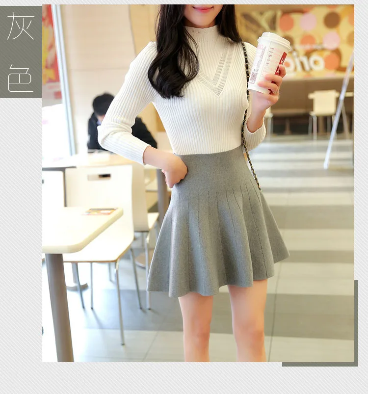 2019 Мини-женские юбки Милая трикотажная Зимняя юбка трапециевидной формы 2019 Осенняя черно-серая Милая юбка с завышенной талией мини-юбка для девочек DF948 <