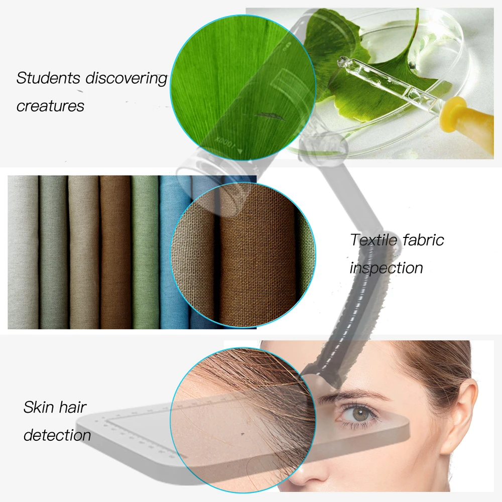 Широкое применение: текстильная промышленность для текстильной инспекции, инспекции печати, промышленной инспекции, образовательных целей, проверки волос, проверки кожи, микробиологического наблюдения, инспекции ювелирных изделий и монет, визуальной помощи и т. Д.