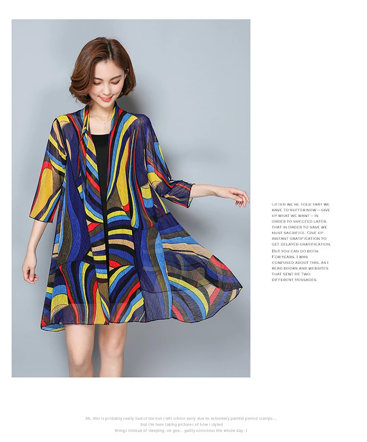 Кимоно Кардиган-кимоно Mujer 2019 Verano свободного кроя средней длины пляжные кардиганы плюс размер кимоно Feminino DC871 <
